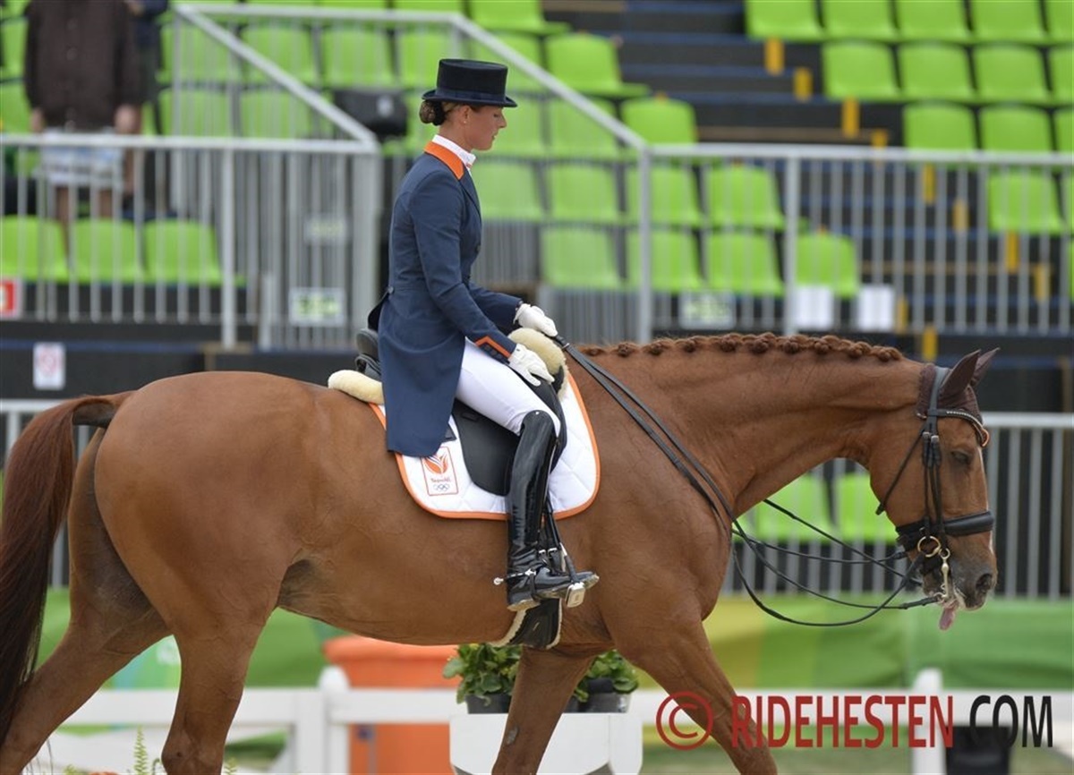 Adelinde var først ude for Holland i dag på banen, men det blev hurtigt tydeligt, at Parzival ikke var på toppen. Og efter Adelinde havde kæmpet med at få Parzival gennem en øgning, og piaffe og passage, valgte hun at give op.