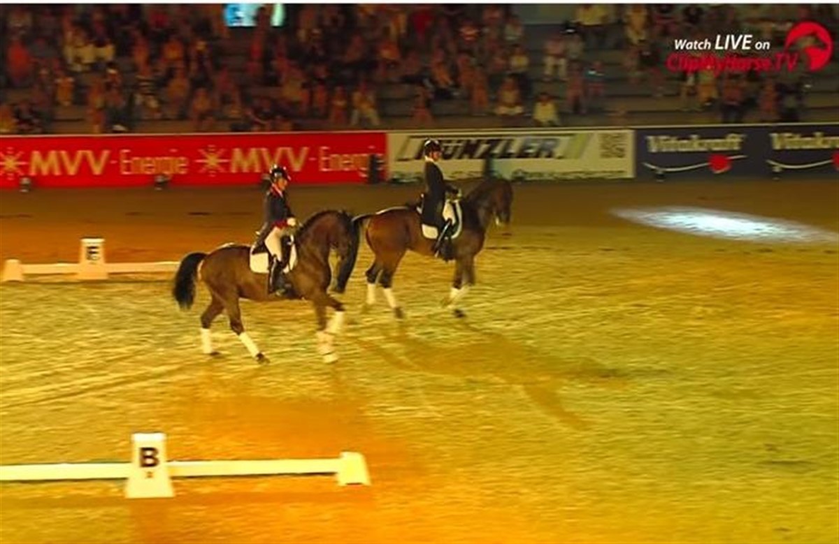 Under gallashowet i forbindelse med det internationale stævne i Mannheim blev publikum vidne til en verdensnyhed: en pas de deux mellem Isabell Werth på El Santo og Charlotte Dujardin, der havde lånt den 11-årige hoppe Et Moi af Karin Hess-Müller. De to ryttere fik lige mulighed for at træne sammen om dagen, inden det gik løs i projektørlys om aftenen.