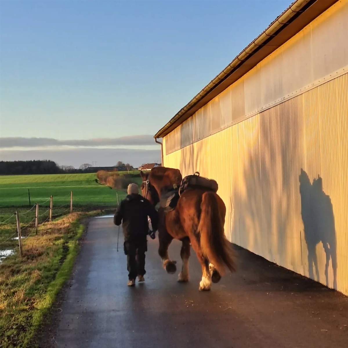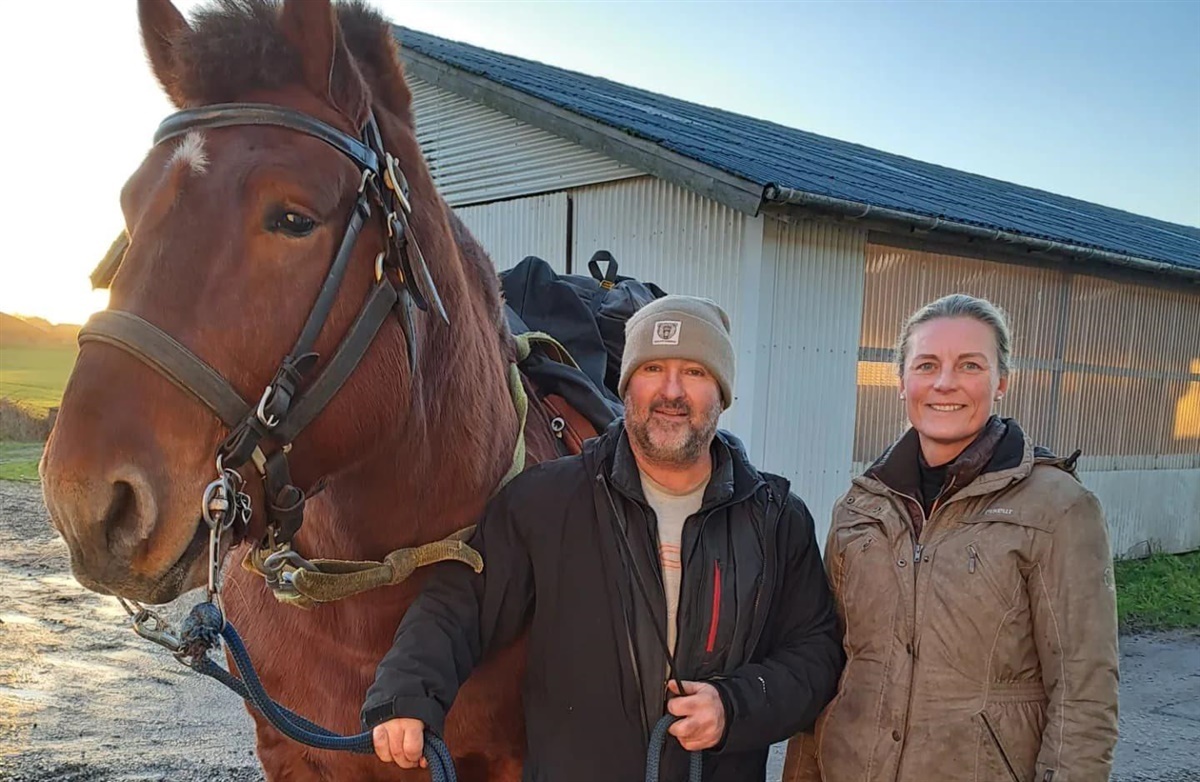 – Den 1. januar meddelte ejerne af Rødding Ridecenter, hvor vi har ti dressurheste opstaldet, at der var kommet en gæst. En mand og hans hest ville overnatte i laden, og på den måde mødte vi franskmanden Pascal og hesten Hurricane, indleder Karina Josefsen, som driver Stutteri Lajgården og Hvenegaard sammen med sin partner Jørgen Hvenegaard.