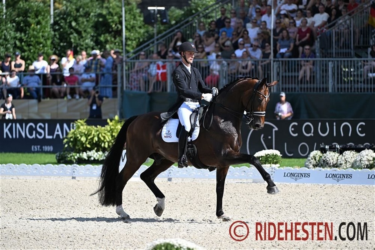 I dag stod den på 5-stjernet Grand Prix, mens rytterne i morgen mødes i Grand Prix Kür. Den første rytter til at åbne ballet var Daniel Bachmann Andersen, der to gange tidligere har redet det populære stævne med henholdsvis Blue Hors Don Olymbrio og Zippo M.I. Det er imidlertid første gang, han har den 12-årige westfalerhingst Vayron e. Vitalis/ P.B. Gloster med, som han senest startede ved EM i Riesenbeck.