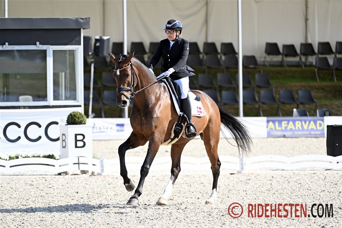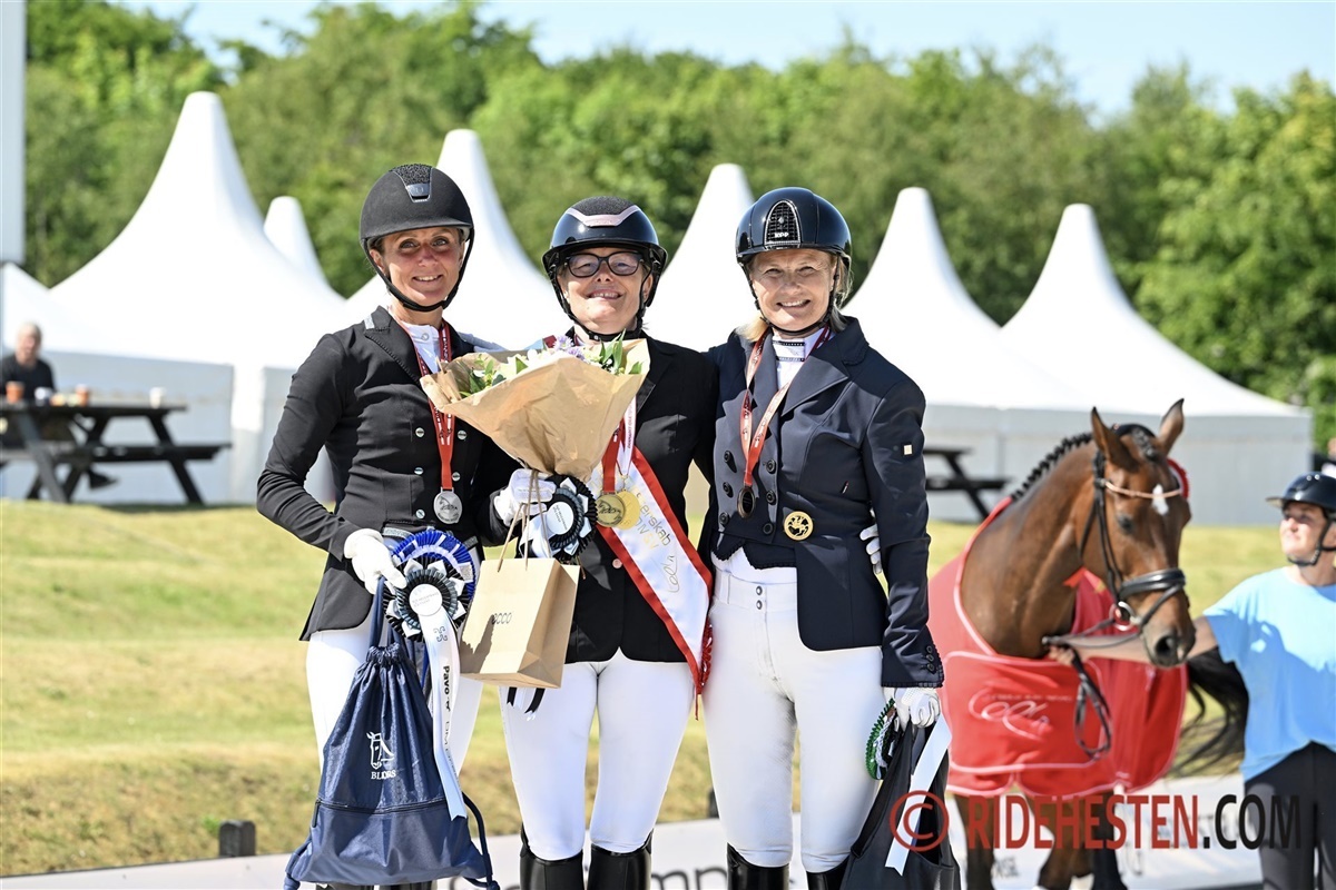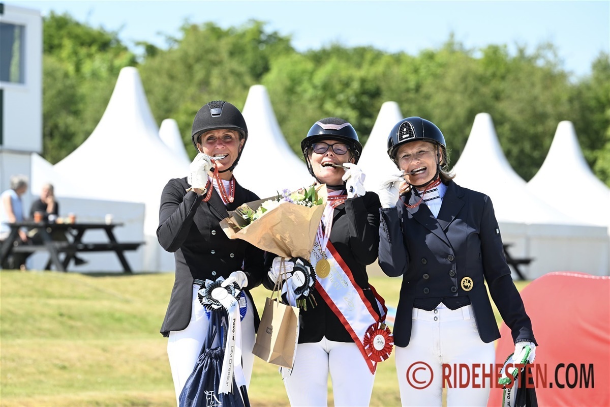 I går blev det til en tredjeplads i den indledende klasse, men efter en virkelig flot kür, hvor alt flaskede sig, blev Pia Wulff Jelstrup og Zafia e. Blue Hors Zee Me Blue/ Carentino (opdr. Gitte Elkjær Kjeldsen) belønnet med hele 77,00%. Med 148,951% kunne hun dermed hænge guldmedaljen om halsen og velfortjent kalde sig danmarksmester.