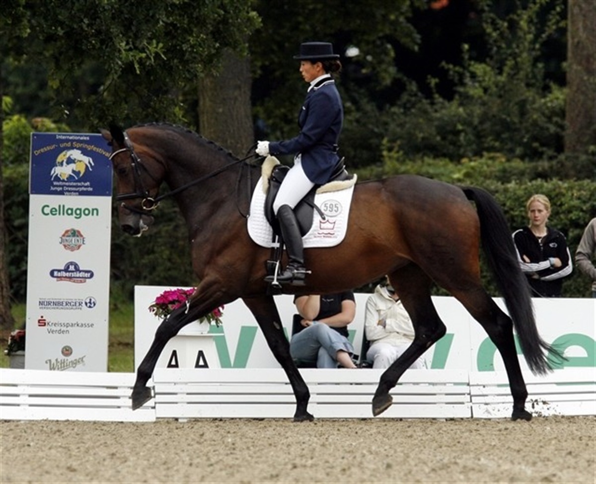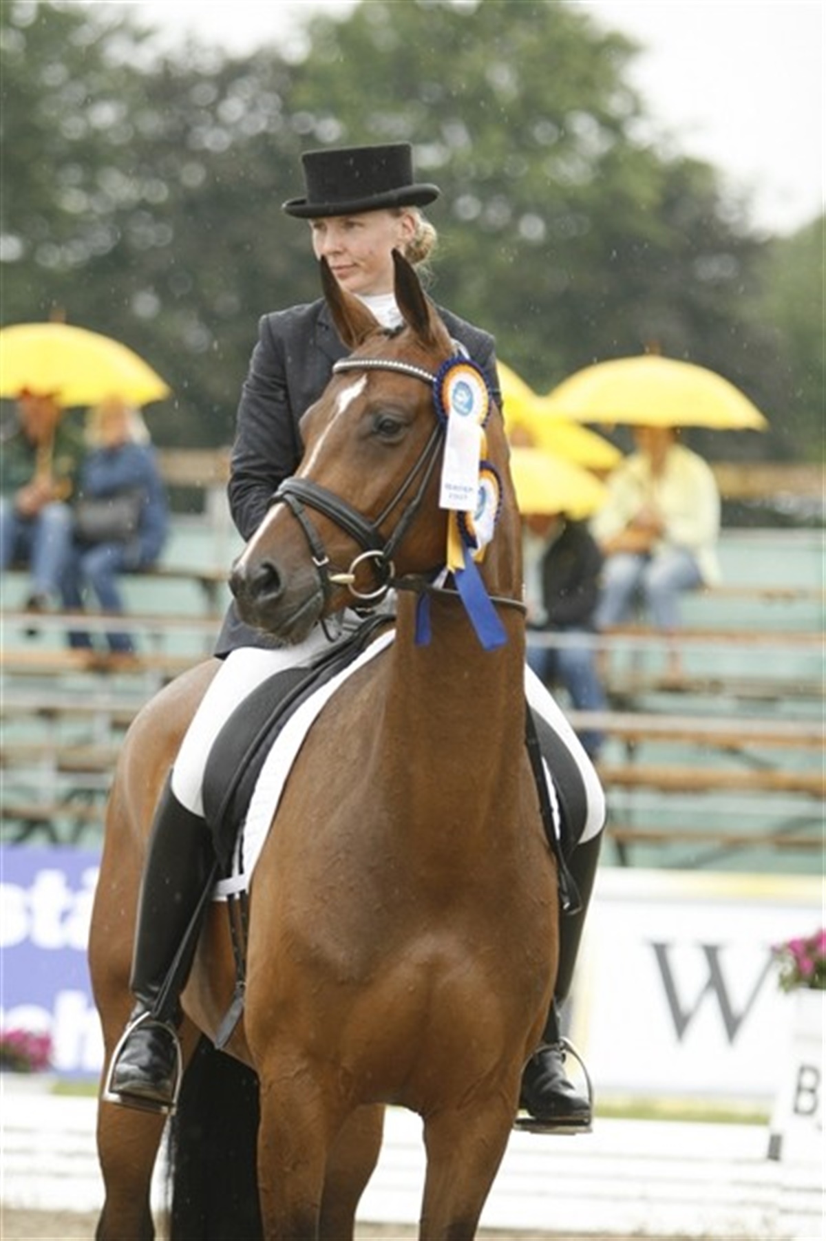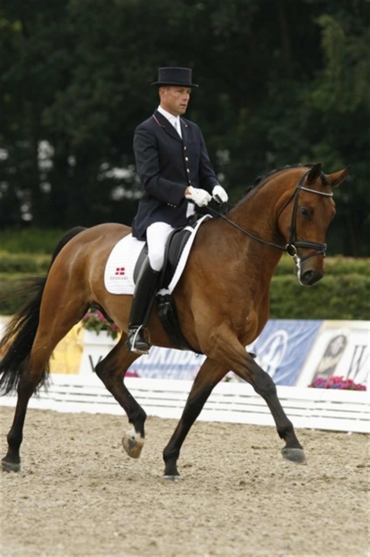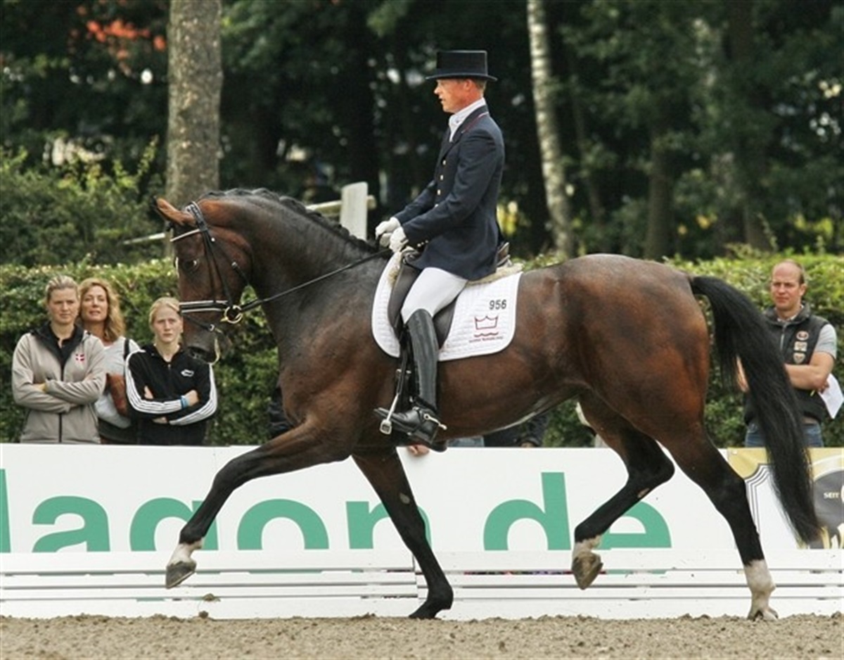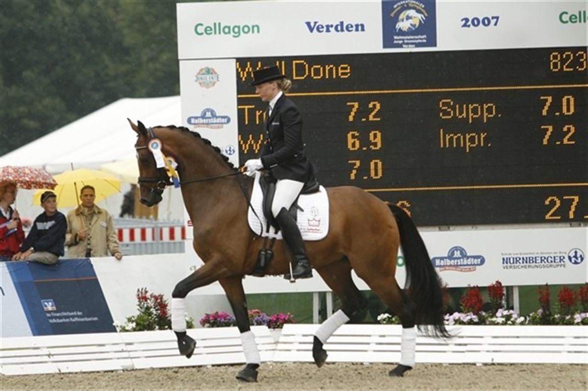 Dorthe Hoeck og guldmedaljehoppen Polka Hit Nexen e. Sandro Hit opdrættet af Hans Jul Andersen og ejet af Berit og Louis Nielsen sejrede i sin gruppe ved VM i Verden. Den gruppesejr sikrede Dorthe og den smukke hoppe en kvalifikation til VM-finalen lørdag eftermiddag. I den samlede stilling sluttede det danske par på 4. pladsen med 7,9 i trav, 8,7 i skridt, 8,2 i galop, 7,8 i ridelighed/eftergivenhed og 8,2 i generelt indtryk ialt 8,16. Vinderen blev tyske Brigitte Wittig og Breitling-hoppen Blind Date, der bl.a. scorede 9,20 i skridt og 9,5 i ridelighed/eftergivenhed. Louise Panum og Merlot's Surprise e. BH Hertug sluttede midt i feltet som nr. 20 med 7,28 points lige foran Rune Willum og Herbie Hancock Graftebjerg med 7,26 - de to Hertug-afkom viste sig ellers godt på banen, men dommerne havde desværre ikke helt det samme positive indtryk af de to velredne danske heste. Joachim Thomsens Chatel's Schurana e. BH Don Schufro var rystende nervøs inde på banen, så Joachim fik slet ikke mulighed for at vise hestens flotte gangarter. Han må i lighed med de øvrige to danskere omkring morgendagens trøstfinale, hvor der kæmpes om yderligere tre pladser til lørdagens finale.
