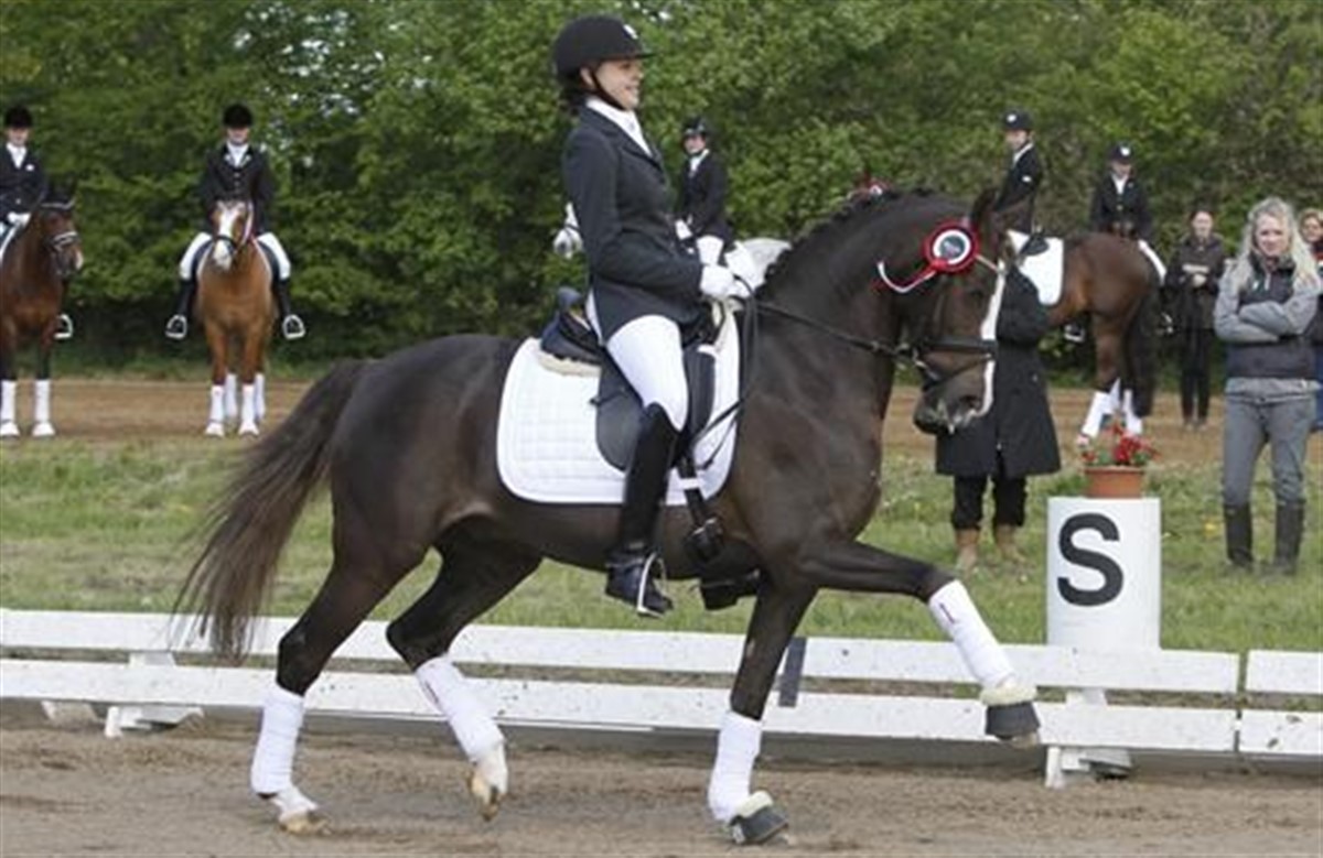 Med kürprogrammer i særklasse gik guldet til Victoria E. Vallentin på Armando, mens Sille Engermann og Janine We fik sølv og Aleksandra Sørensen på Melli’s Dornik tog bronzemedaljen. Sublime danske dressurponyrryttere Nordisk Mester 2012 i kür for kat. I ponyer blev Victoria E. Vallentin og ponyen Armando, der fik 77,30 % for deres kürprogram. Sølvmedaljen gik til Sille Engerman og Janine We, hvis program blev bedømt til 75,55 %, mens Aleksandra Sørensen på Melli’s Dornik opnåede 73,55 % og fik bronze. Nicoline Ravn Jensen og ponyen Campari WE fik 68,45 %, hvilket placerede parret på en 9. plads. Torsdag vandt holdet guld i holdkonkurrencen, og i går i den individuelle klasse gik guldet til Sille Engermann, mens Victoria E. Vallentin fik sølv og Nicoline Ravn Jensen på Campari We fik bronze. Dermed har de danske ponydressurryttere vundet alle medaljerne ved NM 2012! Kilde: Dansk Ride Forbund Se mere via linket til højre.