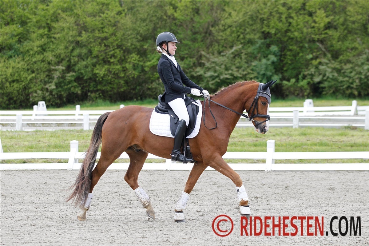 Dagens første klasse ved distriktsstævnet i dressur hos Hedensted og Omegns Rideklub var en LB1, hvor Laura Bækby Hansen og Lykkehøjs Terminator e. FS Calimero red til hele 71.129% i et flot program og vandt klassen. Placeret som nummer to blev Amaia Hartvig Bruun Severinsen og ponyen Magic Spot On e. Cwrtycadno Cymro/Lennards Monogram med en procent på 67.903%.