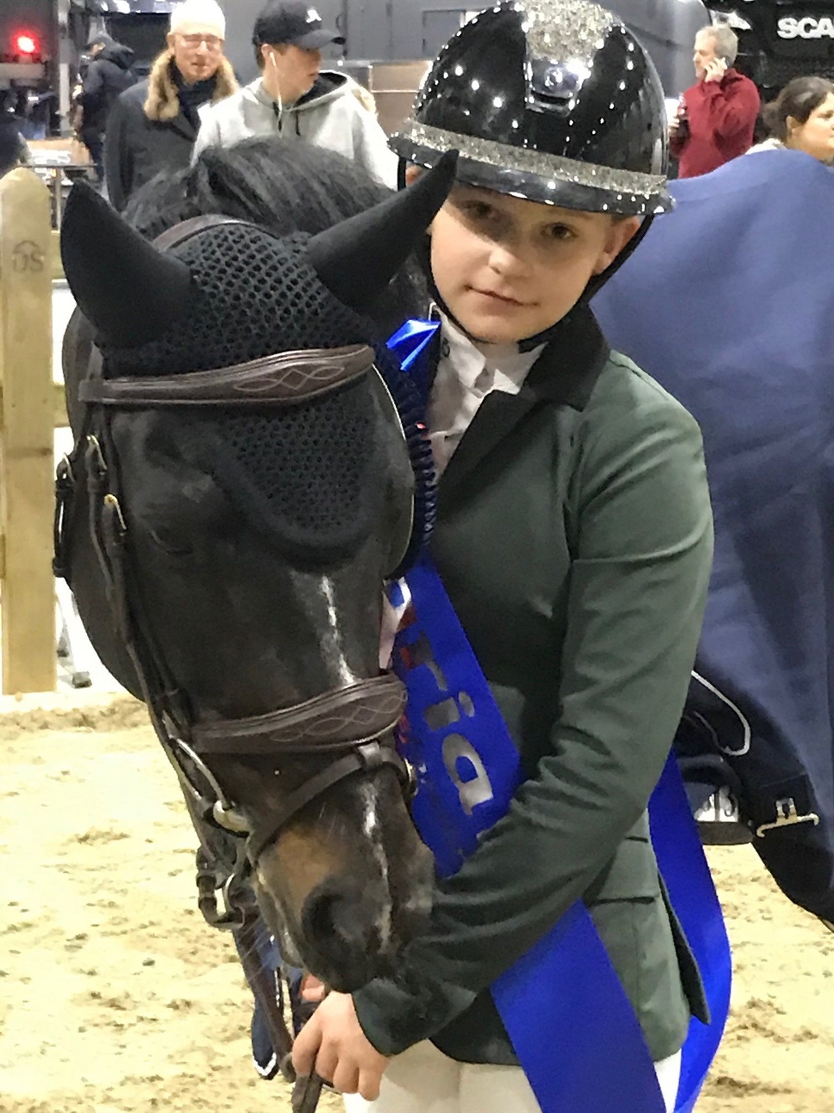I går vandt Emilie og Dynamo nemlig Agria Pony Grand Prix for kat. II i tiden 37,69 med en flot fejlfri runde foran både norske og svenske ponyryttere.