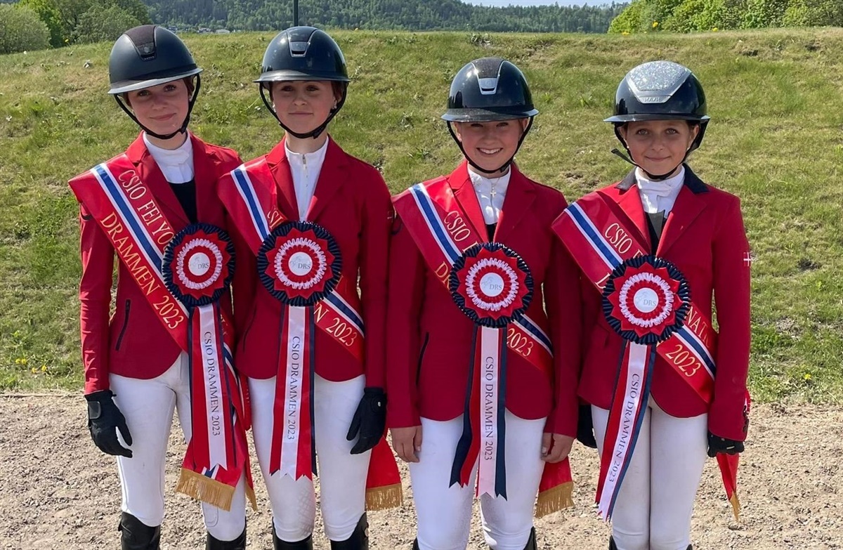 – Alle pigerne var supergode. De vandt med fire fejl efter to runder i 130. Det resultat er vi mere end tilfredse med. Der er supergod stemning på den dejlige stævneplads i Drammen. Alle danskere heppede godt med, fortæller Ulrik Kjær, ponylandstræner, til Ridehesten.