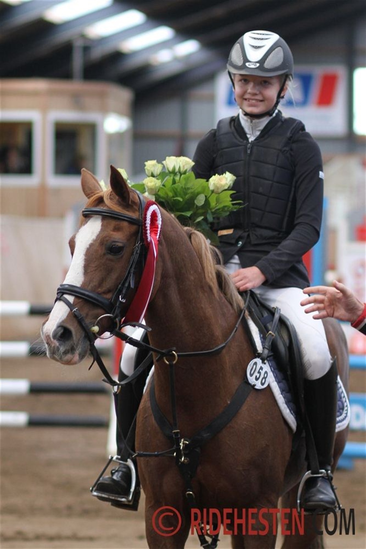 Ponyrytterne har i dag dystet i klasser fra MB2** til S1*. Især dagens højeste klasser fyldte hallen med tilskuere, og publikum levede sig helt ind i de spændende tidsspringninger, så rytterne blev mødt af høje bifald og jubel efter deres ridt. Stævnets sponsorer havde sørget for flotte ærespræmier til de placerede ryttere, og også de ryttere der endte på den "utaknemmelige" placering som første uplaceret blev kaldt med ind til præmieoverrækkelserne og fik overrakt en ærespræmie. I begge S1*-klasser, der blev afviklet i metode A, formåede kun tre ekvipager at ride en fejlfri runde. Hos II'er ponyerne sejrede Cathrine Møller og Lundehøjgaards Quiet Step i tiden 55.49, skarpt forfulgt af Cristoffer Nerving Møllekær og Colour Mix, der red sig ind på en andenplads i tiden 55.64 sek. Klassens treer blev Signe Kyhl Gøtske og Enghøjs Red Scarlet, som fik en tid på 56.65. I S1* for kat. I gik førstepladsen til Simone Lykke Hansen og Sunset Surprise, der sikrede sig den røde roset efter et fejlfrit ridt i tiden 56.58. Caroline Emilie Ringgren og Simply Sensational blev toer med en tid på 58.57 sek., mens Freja Sidal Mortensen og Klooster's Showman II fik en tredjeplads i tiden 65.19. I morgen, søndag, tager de i Hedensted hul på landsstævnets tredje og sidste dag, og det vil her være muligt at overvære de dygtige ponyryttere dyste i klasserne MB1*, MA1* og MA2**. Alle resultater fra stævnet (samt søndagens startlister) kan ses via linket til højre.