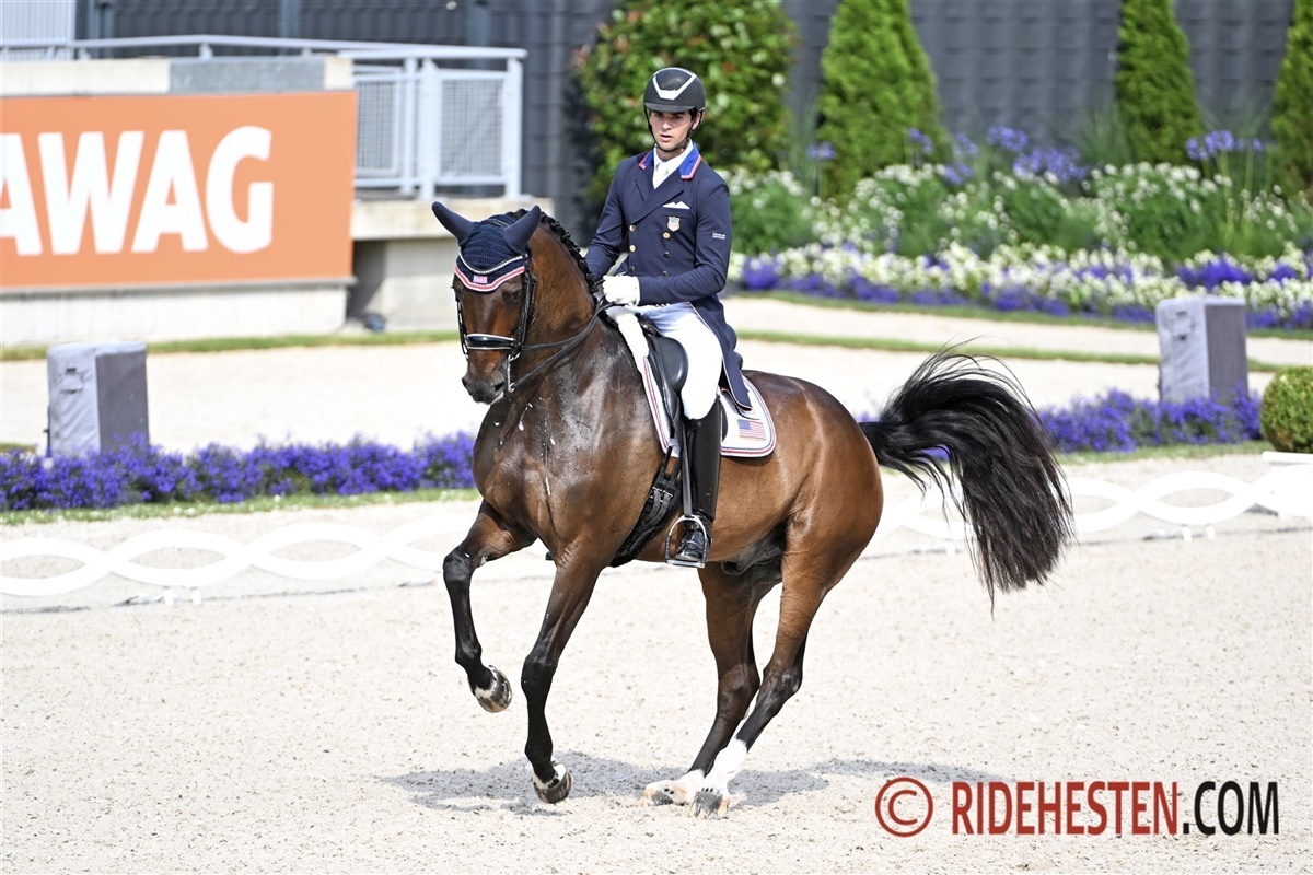 Det blev også lidt dansk på den efterfølgende placering, da amerikanske Christian Simonson red sig ind på tredjepladsen med 75,60% på den danskopdrættede DV-vallak Son of a Lady e. Soreldo/ Welt Hit II (opdr. Trine og Allan Severinsen).