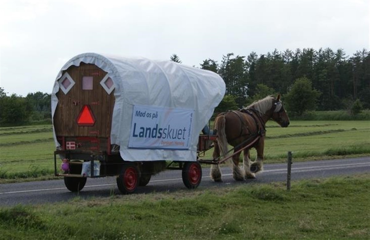- Han skal også med til en tillids-konkurrence, hvor det blandt andet handler om at turde gå forbi balloner og den slags. Det er han ret god til, siger Mille om den scenevante jydehest, mens de langsomt bevæger sig gennem landskabet og undervejs har forskellige gæster med ombord.