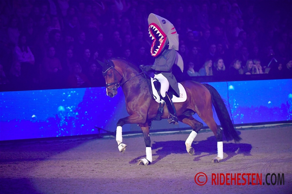 Publikum gøs også med, da kostumespringningen blev redet i højt tempo af de deltagende ryttere. Det blev Mathias Nørheden Johansen på hesten Contonio e. Contendro/Lux, der vandt springningen. Mathias Nørheden Johansen og Contonio vandt også kostumespringningen i går til gallashowet.