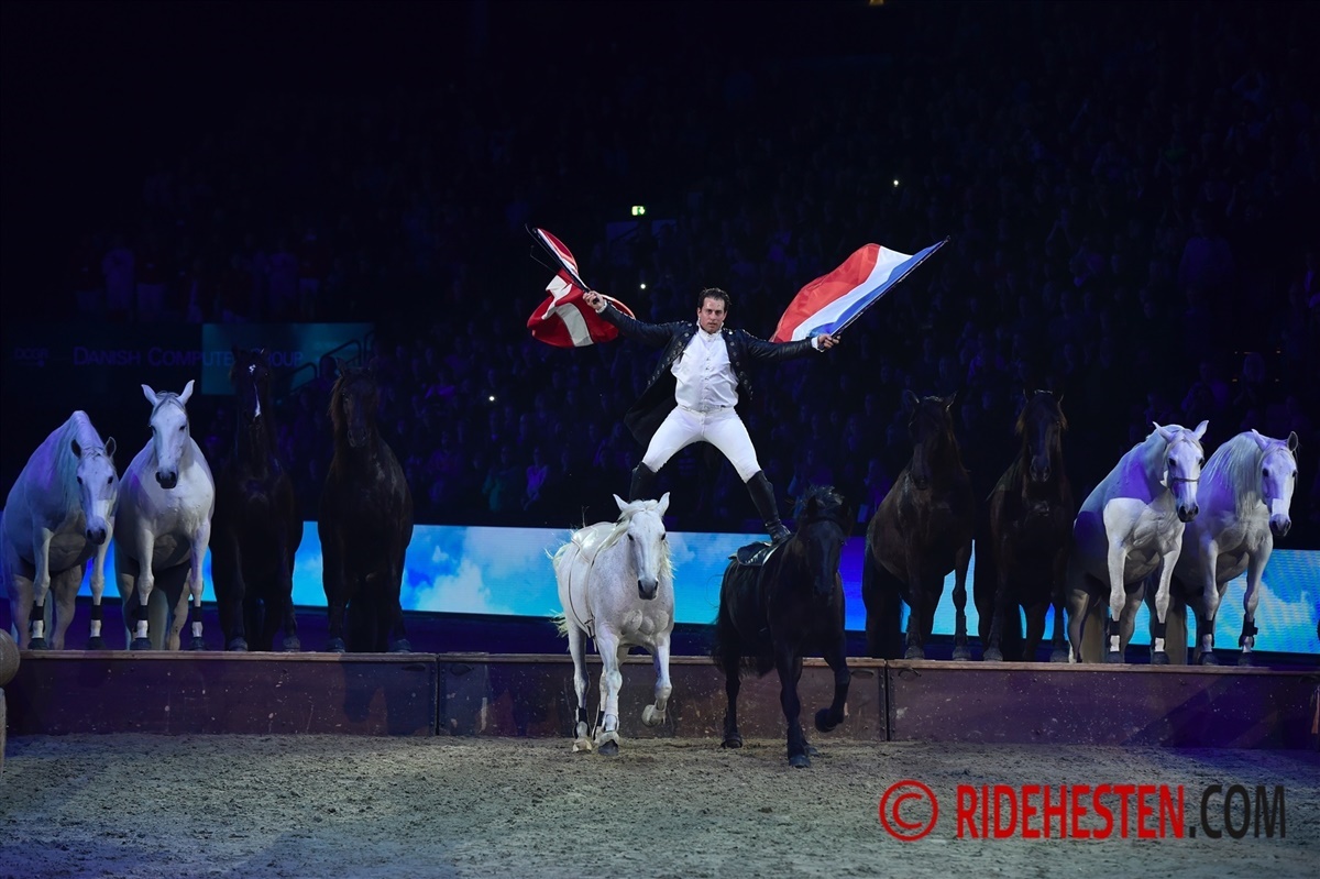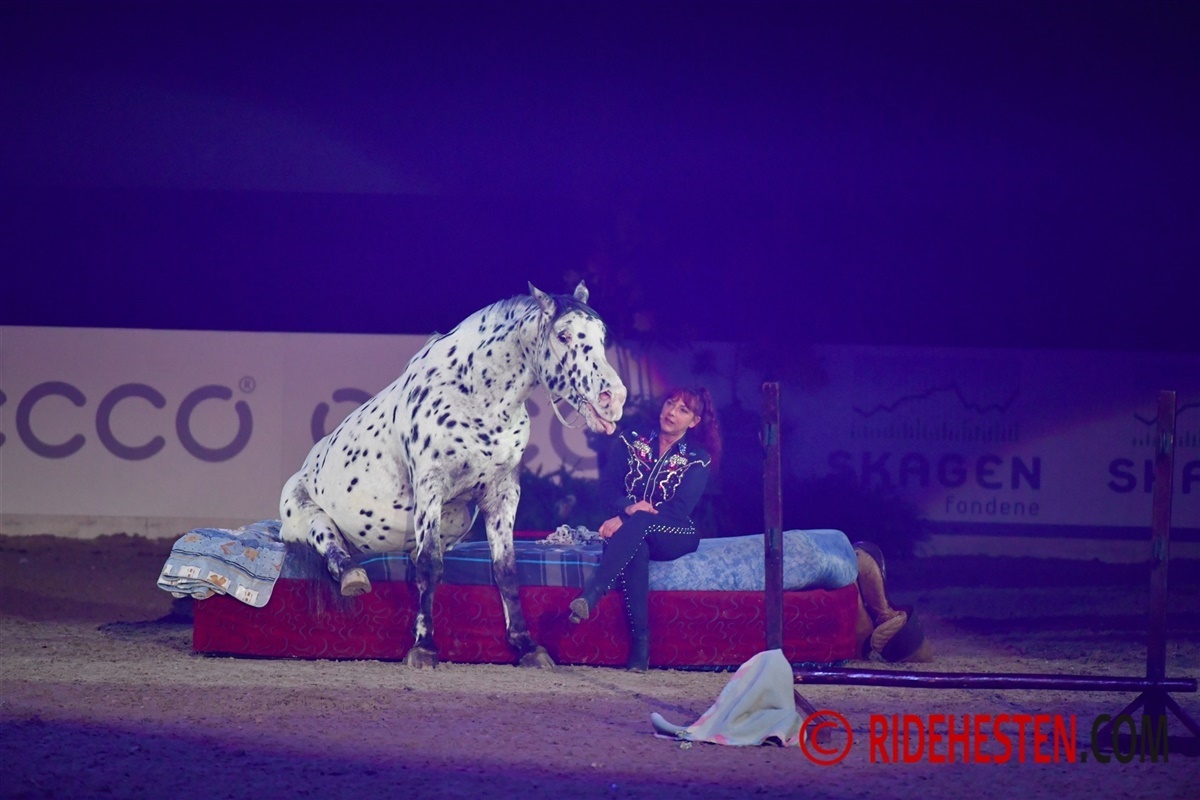 Da østrigske Rosi fik sin hest Scout til at gå i seng, blev der ikke kun trukket på smilebåndet, men også grinet og klappet. Og begejstringen nærmest løftede taget på Boxen, da franske Lorenzo styrede sine 10 heste ved at stå på to af dem og med manér sluttede showet.