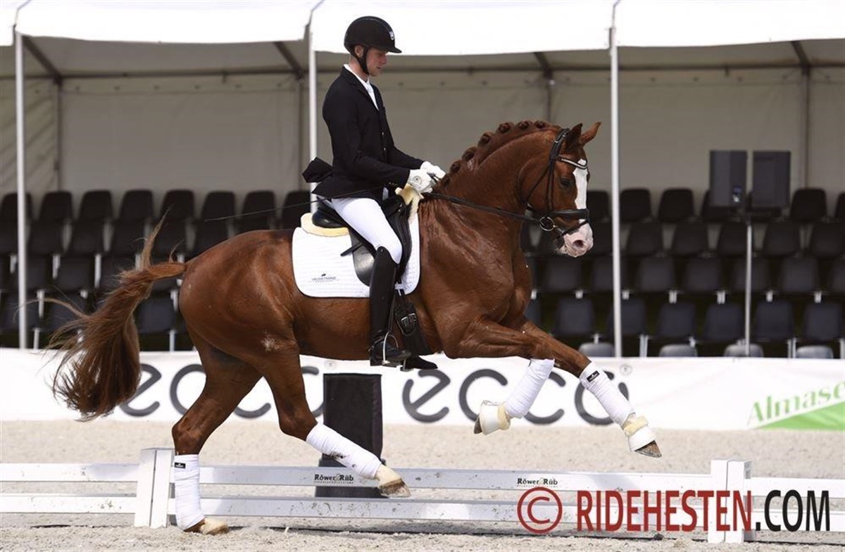 Den udtryksfulde og stortgående Quaterhit e. Quatergold/ Sandro Hit blev som 3-års fremstillet af Helgstrand Dressage til kåring i Dansk Varmblod, hvor han aflagde en særdeles god 35-dages test og blev færdigkåret i Dansk Varmblod med 9 i både trav og galop. Hos Helgstrand er Quaterhit blevet uddannet af beriderne Kenneth Damgaard og Søren Wind.
