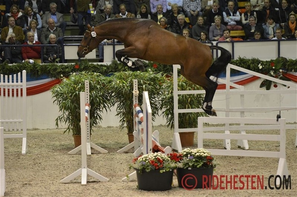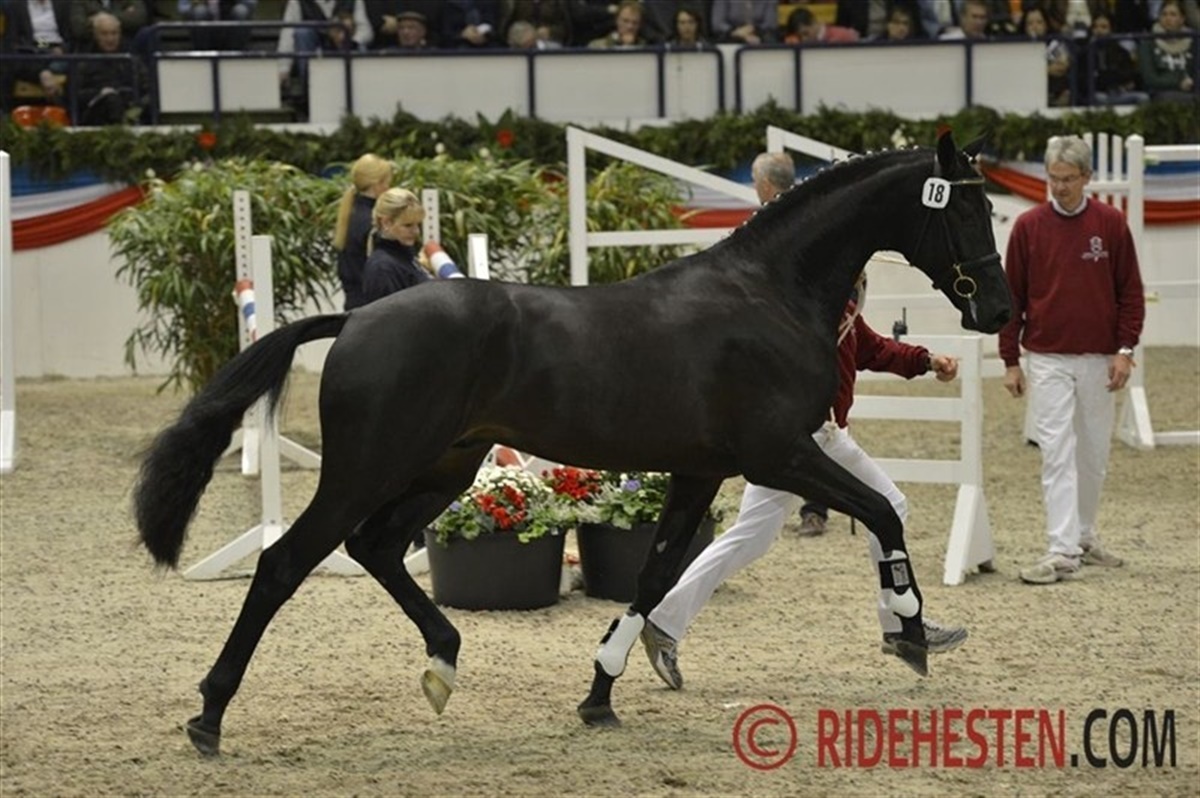 Hånden på hjertet så blev formiddagen i Holsten Hallen i Neumünster en ørkenvandring af meget almindeligt springende hingste. Enkelte lyste dog op bl.a. en Calido I-søn Calinello samt den skimlede Casall-søn Clarcon. Efter frokost blev der til gengæld rigtig meget god løsspringning at glæde sig over, bl.a. et par stort springende Colman-sønner og flere afkom efter den danskavlede tidligere fløjhingst i Holsten, Diarado. Hans fire sønner sprang stort set støtterne ud, og det tilsyneladende helt ubesværet. Leif Konradi fra Farum fremstillede en Larimar-søn trukket på samme stamme som Bo Høstrups Cajo, international Grand Prix-hest. Latendro hedder unghingsten, der viste sig godt i hallen, dog med et enkelt let bagbens nedslag, som han viste en god reaktion på ved det efterfølgende spring. Publikums favoritter I Holsten bekender man sig næsten udelukkende til avlen af springheste, men man arbejder også med et par linjer, hvor fokus er på dressurafkom. Carabas, der tidligere har været ejet og redet af Andreas Helgstrand i internationale konkurrencer, fremstillede to afkom. Den ene kat. 18 Carantas en 170 cm helt mørkebrun, højstillet hingst med masser af udtryk og gangartspotentiale fik rigtig gang i hallen da han blev mønstret en ekstra gang for publikum. I eftermiddagens løb fik publikum også lejlighed til at juble over de unge hingste af springafstamning, og det var en Quidam de Revel-søn Quvee Prestige med Cento til morfar, der opnåede dagens højeste og længste bifald. Imponerende og tankevækkende, at Quidam De Revel på 30 år fortsat kan producere topmoderne afkom, der med lethed kan konkurrere mod langt yngre avlshingste, hvad andgår funktion og type hos afkommet. Lørdag er der afslutning, forbundet skal finde en fløjhingst og en række præmiehingste og så slutter dagen med auktion over kårede og ikke kårede hingste samt rideheste.
