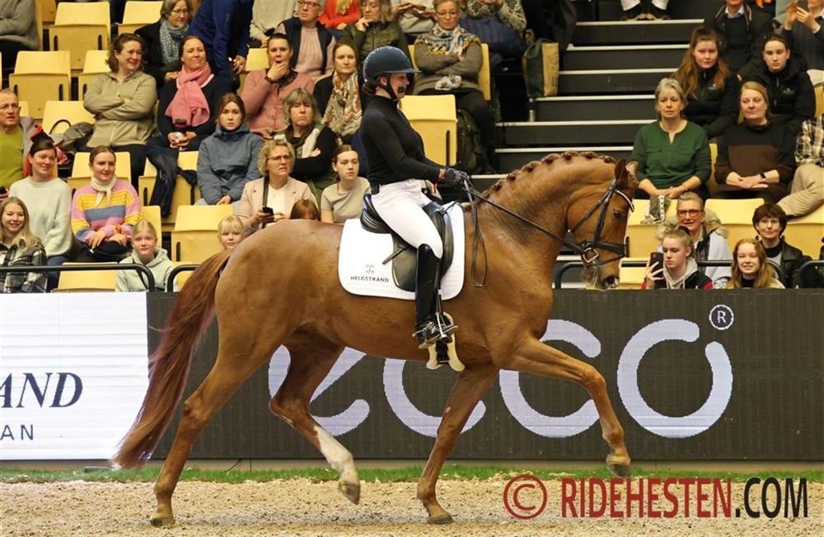 Tredjepladsen fra i torsdags imponerede også og fik flotte karakterer af Cathrine. Den røde hingst Alkaline e. Secret/ Zalmiak Firfod (opdr. Anette Blangsted) har gjort det rigtig godt til fremvisning med sin egen rytter, Merita Hagren, onsdag og torsdag.