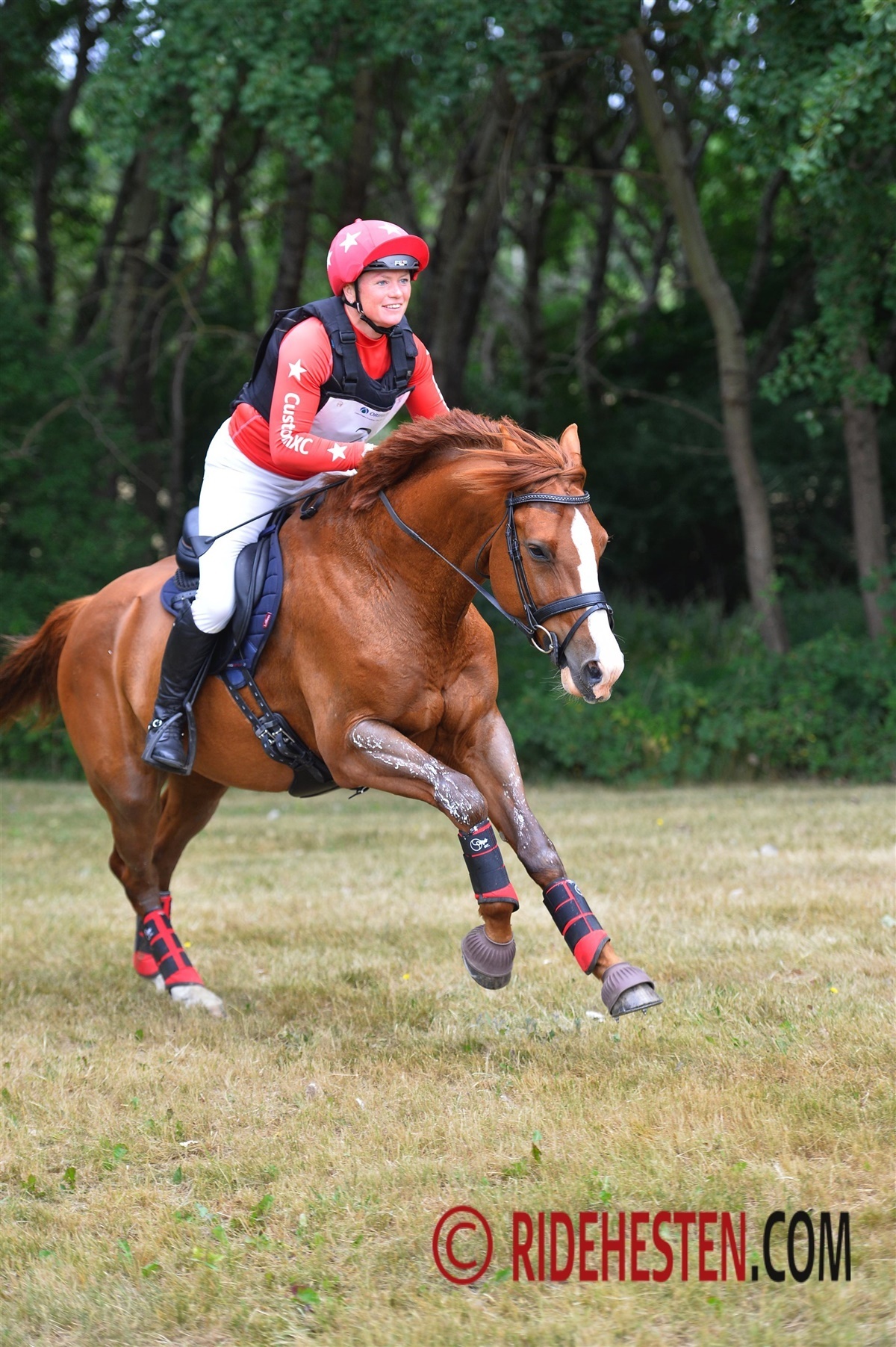 Hanne rider på hendes hjemmeavlede 10-årige hest, Amequ Torino.