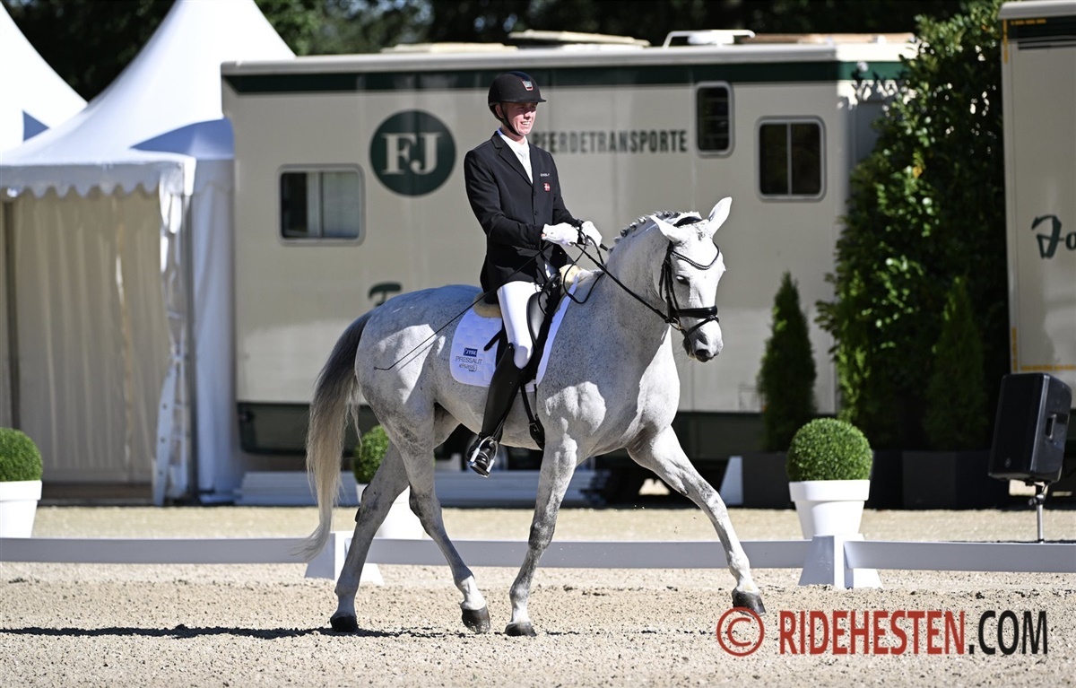 Det ser dog ikke ud til, at Tobias har hvilet på laurbærrene imens han har holdt stævnepause, for han tog sig både af første- og andenpladsen i dagens klasse. Førstepladsen sikrede han sig på sin mangeårige makker, DV-hoppen Jolene Hill e. Blue Hors Schufro Hit/ Windsor (opdr. Hanne Andreasen). Parret var medaljefavorit til PL i Paris i sommers, men da hoppen desværre blev ramt af transportsyge, måtte de trække sig fra konkurrencen. I dag vendte de så tilbage med stil, da de red til 76,814% og dermed sikrede sig en suveræn sejr.