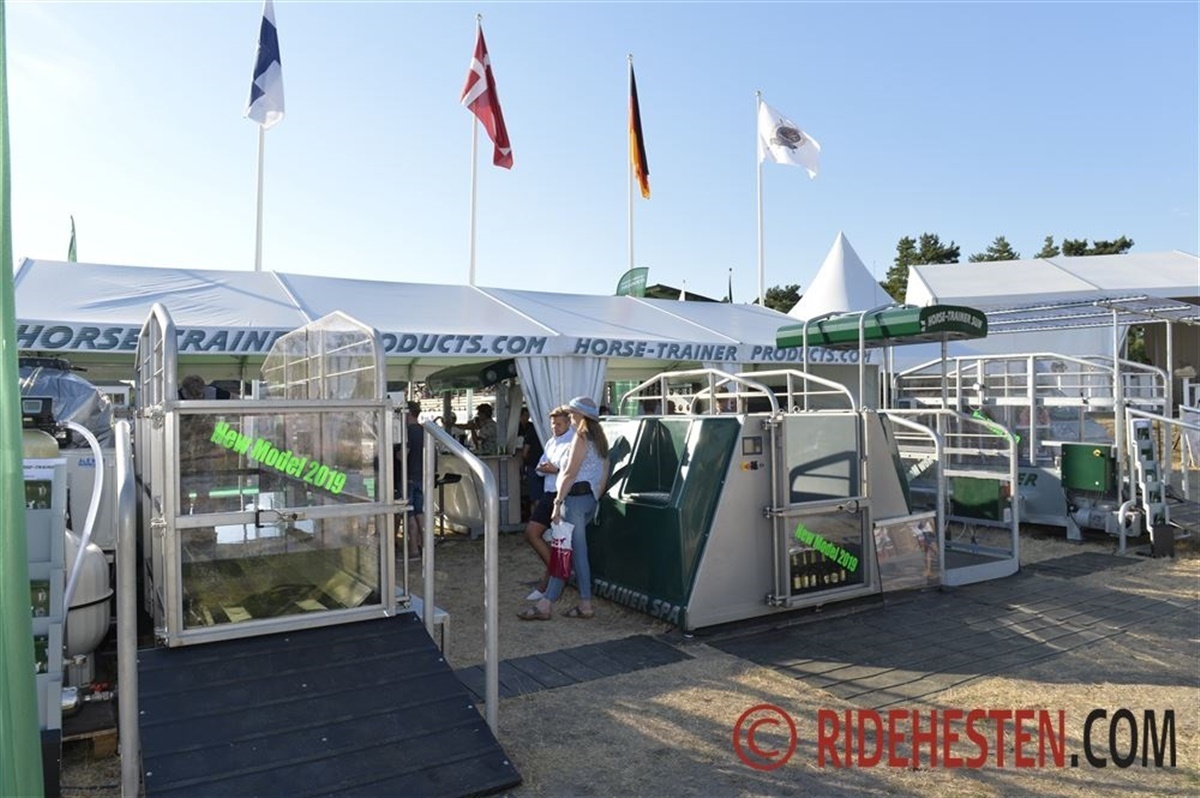 Norman har ellers vundet hævd på pladsen ved siden af den ene tribune ved springbanen, men nybyggeri gjorde pladsen klemt. Istedet har Horse-Trainer så fået ny placering for enden af dressurbanen, og det betyder, at man fra standen kan sidde behageligt og følge dressurkonkurrencerne. Det er ikke en billig investering: 150.000 skr. koster sådan en stand, men så er vand og strøm også gratis.