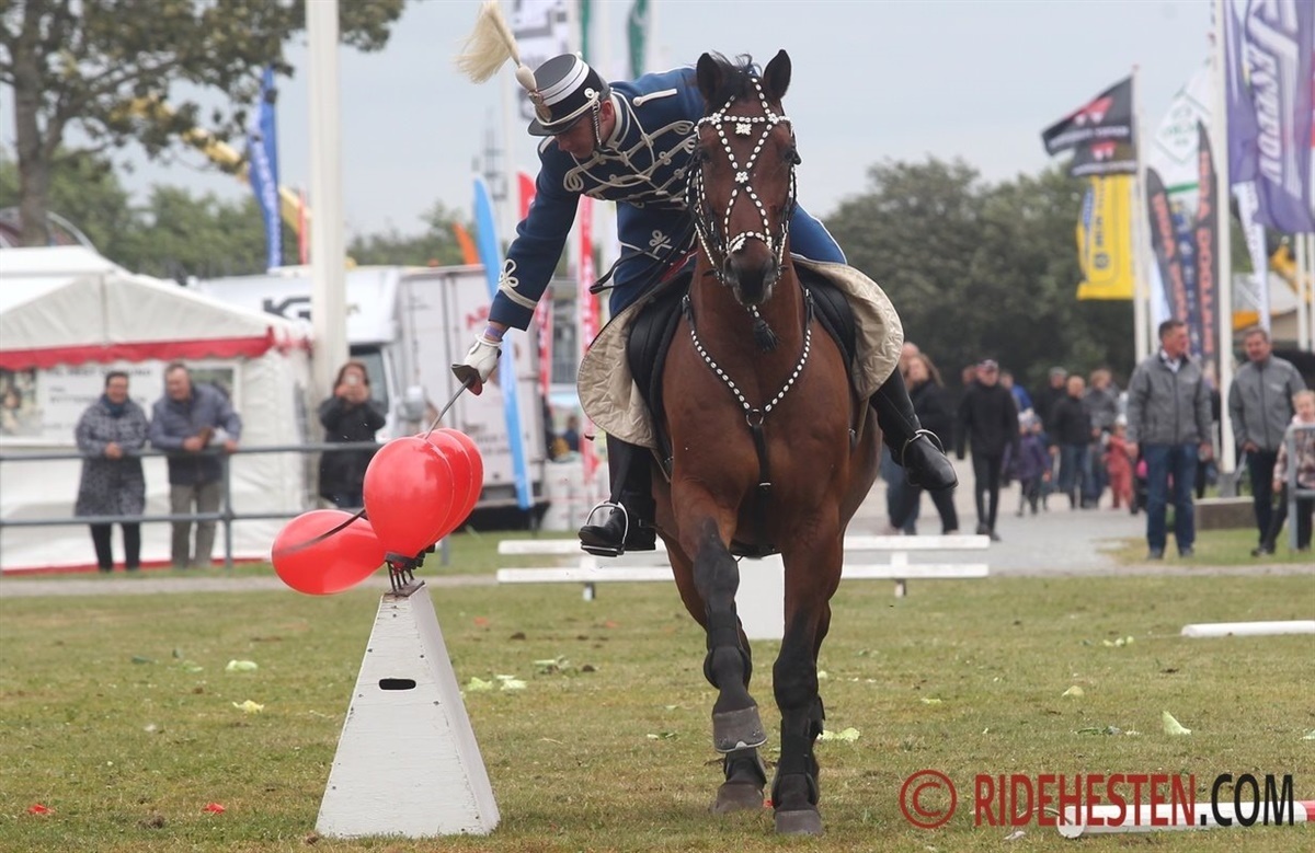 Der er kaperkørsel rundt på dyrskuepladsen, og der har været en forrygende hesteopvisning med bl.a. dygtige og alsidige gardehuser, der har demonstreret heltemod og ridekundskaber og et skarpt øje for i fuld galop at gribe et krus øl og sprænge en ballon med svær.