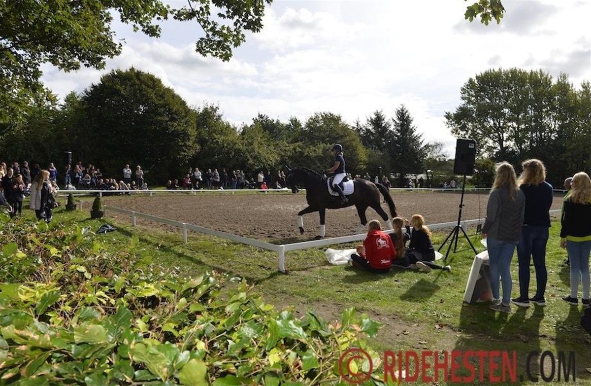 Dressur DM-finalisten Trine Mittag Jensen havde også sin DV-hest, Gammelenggårds Easy e. Light and Easy/Akinos (opdr. Nanna og Knud Jønsson), med til en smuk dressuropvisning. Efterfølgende afholdt hun clinic med to af sine elever, Anna Maria Christiansen på V-Power Horsebo, der blev placeret til DM for trakehnere, og Sofie Bech Christensen, der sammen med haflingeren Sting er nykårede danmarksmestre i dressur for haflingere.
