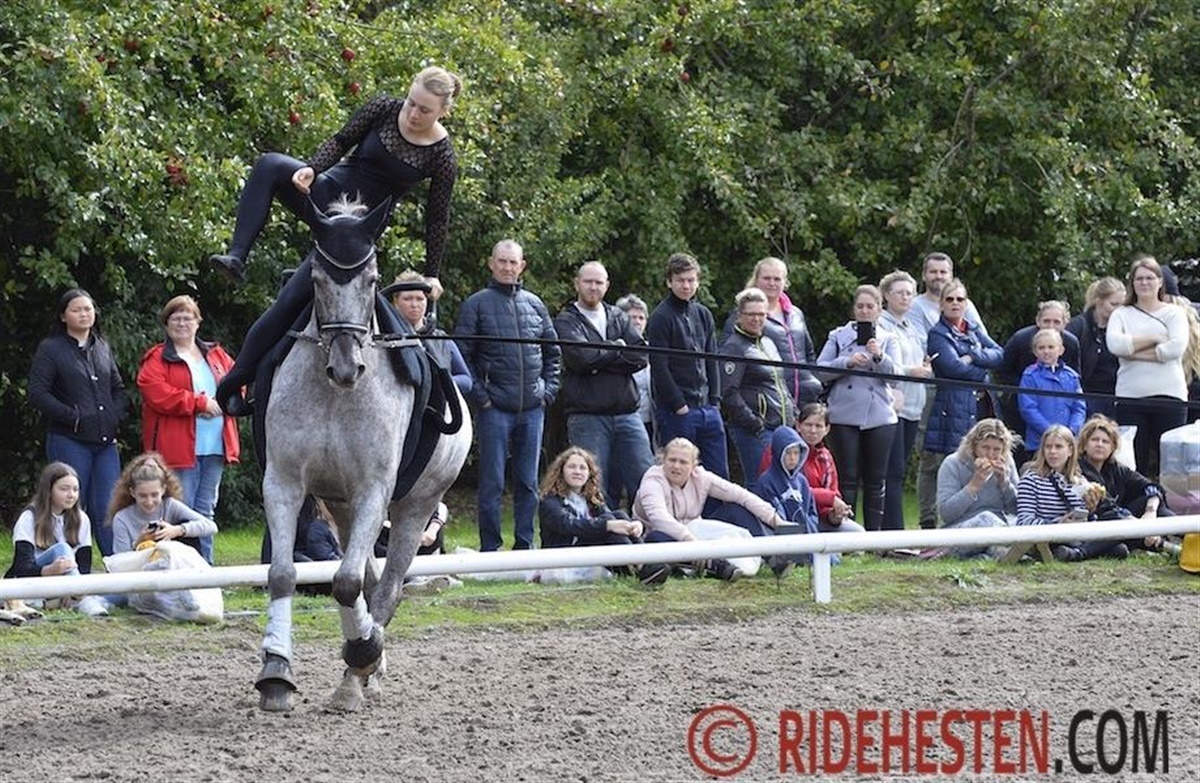 Esbjerg og Omegns rideklubs hold lavede en smuk voltigeringsopvisning, der i år både deltog ved EM og vandt NM-guld.