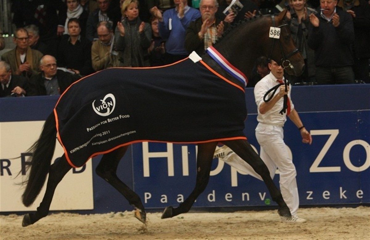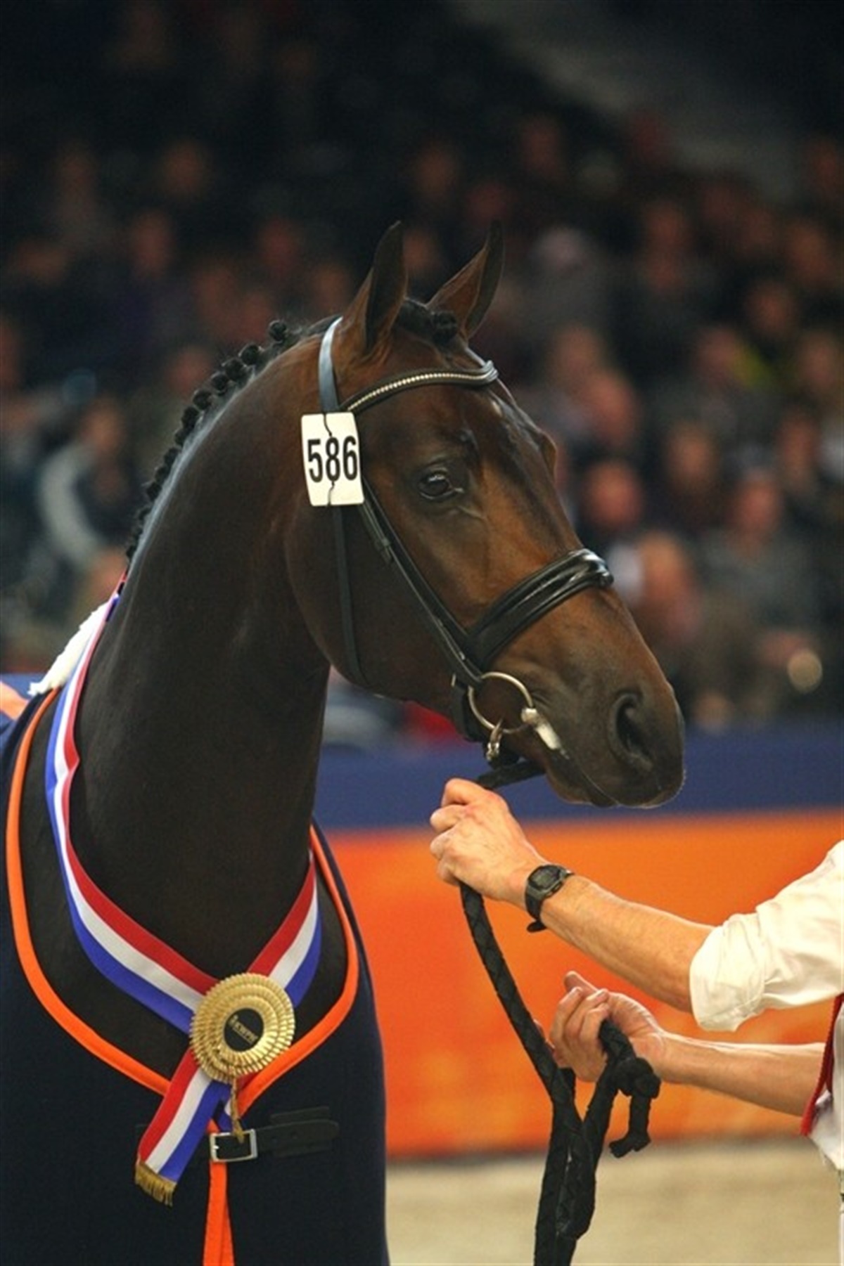 Den dressurbetonede fløjhingst Diebrecht blev købt på auktionen af Blue Hors ApS i Danmark, hvilket der kan læses mere om på Ridehesten.com. Den danskejerede hingst Blue Hors Hotline også kåret en søn, der blev tildelt præmie. Vi bringer her en kort oversigt over årets præmiehingsten og henviser til Poul Graugaards artikel i magasinet Ridehestens martsnummer. Præmiering springhingste: 1 Durrant e. Warrant / Voltaire 2 Devonte e. Tangelo van de Zuuthoeve / Burggraaf 3 D.Rubertha R e. Namelus R / Contender 4 Dante e. Padinus / Mr.Blue 5 Don Juan e. Berlin / Quick Star 6 Daf e. Lucky Boy / Cantos 7 Dimaggio e. Sir Shutterfly / Voltaire Præmiering dressurhingste: 1 Diebrecht e. Zizi Top / Kennedy 2 Dude e. Vivaldi / Havidoff 3 Dorado e. Krack C / Rousseau 4 Darkboy e. Vivaldi / Havidoff 5 Deniro V.O.D. e. Hotline / Michelangelo 6 Davinci e. Valdez / Voltaire 7 Didando e. Tuschinski / Jetset-D