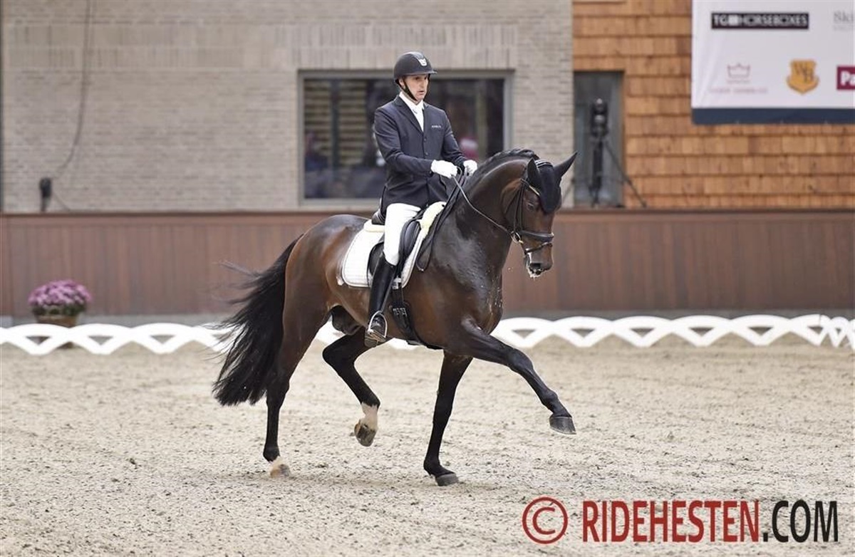 Den tyskfødte hingste Revolution e. Rocky Lee/ Rouletto har haft en ualmindelig succesfuld karriere i sit blot 6-årige liv. Han har tidligere vundet Pavo og Dansk Ride Forbunds championatsfinaler for 4- og 5-års, lige som han som 5-års vandt UVM og ved UVM i år tog sig af sølvmedaljen sammen med sin medejer og faste rytter Andreas Helgstrand. Kurt Christensen roste Revolutions elastiske og taktfaste trav med meget flotte øgninger, men der blev i dag særligt i skridten lidt uro fortil, hvor hingsten ville dykke lidt i hånden. Igennem sin store, rummelige galop med god op-ad-bakke tendens viser hingste sig funktionel i de imponerende øgninger, såvel som den her viser talent for samling, Changementerne var ikke alle gennemsprungne, og det fik live kommentatorerne, Daniel Bachmann Andersen og Karsten Pedersen, til at mene, at dommerne var i det gavmilde hjørne med pointene. Hingsten blev fremvist i flot form og dommerne udtalte, at den har fantastisk kapacitet til fremtiden. Topkarakteren 10 blev det til for både galop og kapacitet. Samlet intet mindre end 9,44.