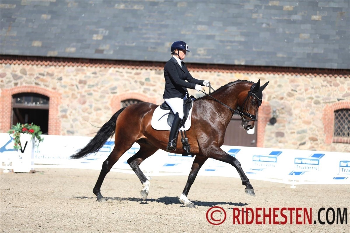 – God og funktionel trav, med særdeles god bæring og sving. Skridten er særdeles god. Meget flot ridt med gode changementer og traverser. Rigtig godt sug på tøjlen, flot.