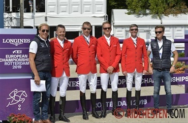 De danske ryttere og heste er vel ankommet til Rotterdam. Kl. 17.00 i eftermiddag er der veterinær tjek af hestene, og kl. 20.00 er der lodtrækning til morgensdagens Grand Prix-klasse, der er udskrevet som en landskamp med syv nationer til start. Danmark stiller i stærk opstilling i Rotterdam; Mikala Münter Gudnersen er fløjet til Europa med Leonberg, og hun får sin internationale Europa debut i Rotterdam, Sune Hansen kommer til start med Gredstedgårds Casmir, Andreas Helgstrand og Carabas samt Anne van Olst og Exquis Clearwater skal kæmpe for de danske farver, og der er ingen tivil om, at der bliver hård kamp omplaceringern idet hollænderne stiller i absolut stærkeste opstilling, ja vel nærmest med grundstammen til det hold, som det kan blive overordentligt at slå i England til august, når EM skal afgøres. Anky van Grunsven har meldt Salinero til start, og den nykårede hollandske mester Edard Gal kommer til start med den nye verdensstjerne Moorlands Totilas og Imka Schellekens-Bartels og Douglas Sunrise er også en del af holdet. Foruden de 7 startende nationer, der også omfatter et stærkt engelsk hold, starter to individuelle ryttere, den ene er Kenneth Dyrby, der er træneruddannet herhjemme og derefter rejste ud af landet og nu starter for USA. I lille tur har Sune Hansen medbragt Blue Hors Leredo, Andreas Helgstrand har guldmedaljehoppen Polka Hit Nexen til start og anne van Olst møder med Exquis Taikoen, en flot samling kommende topheste fra de danske ryttere, men de kommer også til at møde bl.a. den dobbelte verdensmester for ungheste Florencio redet af Hans Peter Minderhoud.