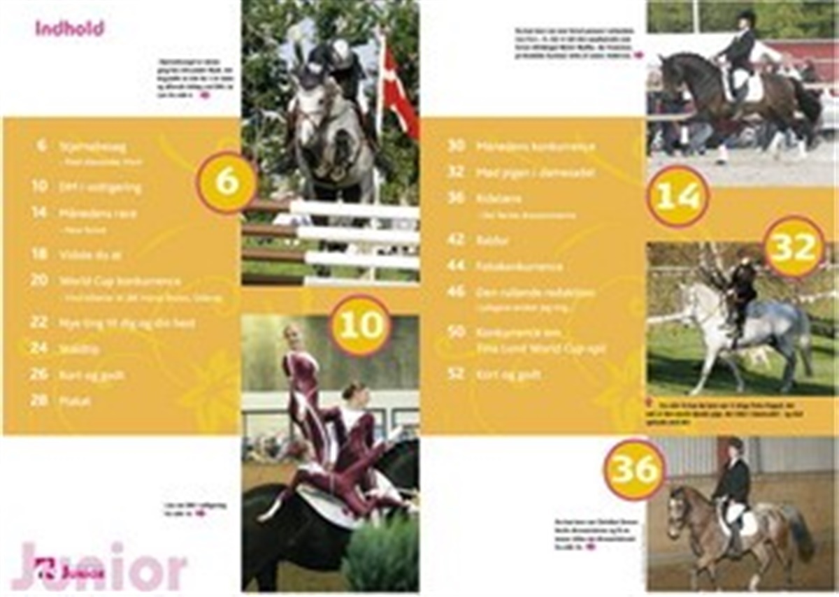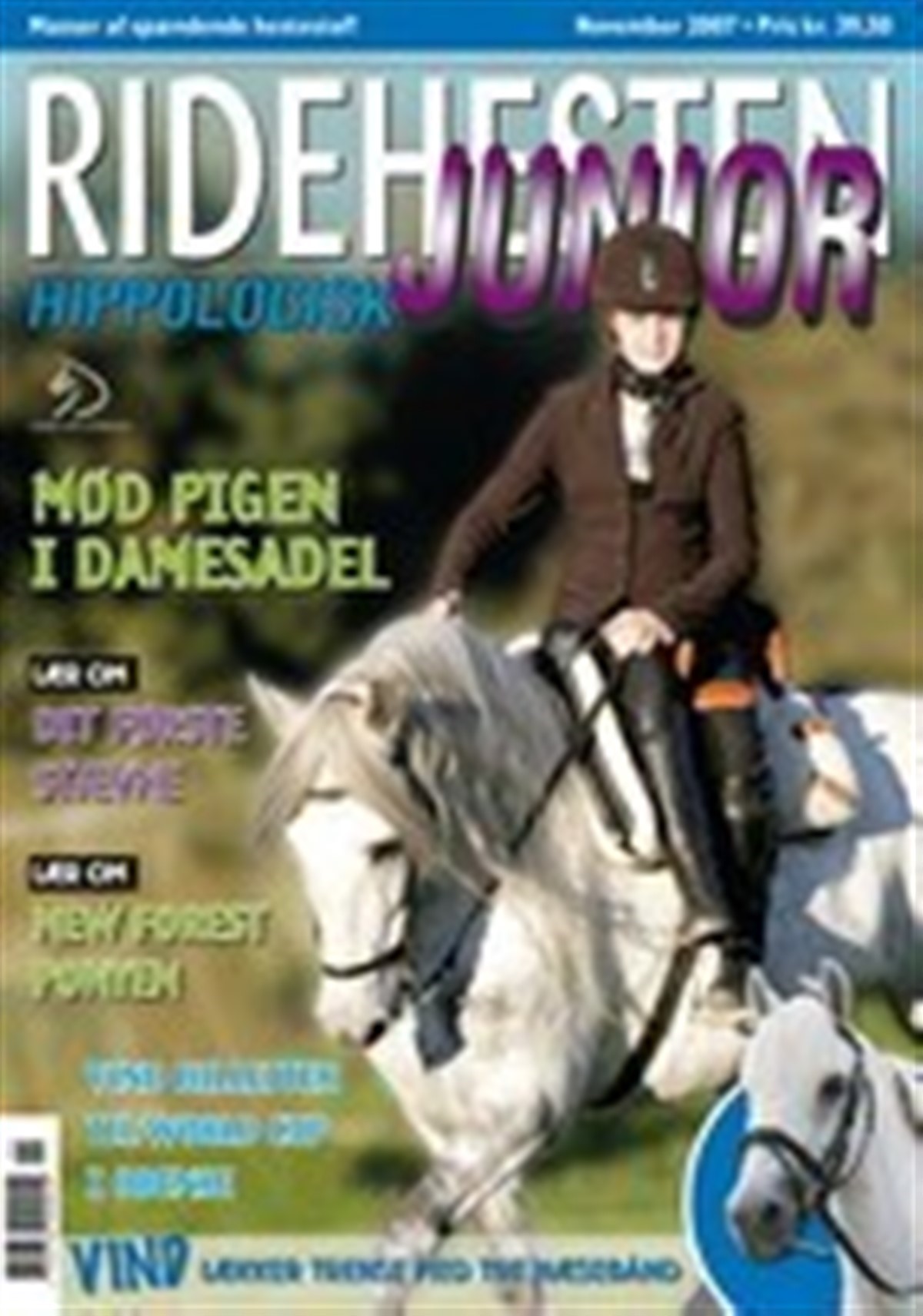 I Ridehesten Junior 11/07 kan du bl.a. møde 11-årige Petra Poppel, der er pigen i damesadel og skal være med i et stort hesteshow i København til maj. Du kan også møde ponyspringrytteren Alexander Mark, som efter kun 3 år som rytter deltog i DM i år. Og så er der Christine Reese, som Junior fulgte til hendes første dressurstævne, hvor hun red LC1 – og artiklen er krydret med en masse tips om dit første stævne og hvad man kan deltage i. Derudover er der tips til dækken og klipning, DM i voltigering, og i Månedens Race, som er New Forest ponyen kan du møde Kristina Rasmussen, som rider military på hendes tre New Forest Ponyer. Og så er der selvfølgelig lidt tips til julegaveønskerne og konkurrencer om Tina Lund spil, World Cup dressur billetter, lækre trenser med 3 næsebånd og fotokonkurrencen, hvor du kan vinde et par termobukser, og en Kentaur sadel, hvis du bliver Årets Hestefotograf 2007. Har du ikke abonnement kan du bestille det ved at følge linket nederst t.h., eller du kan købe Ridehesten Junior i de fleste rideudstyrsforretninger.