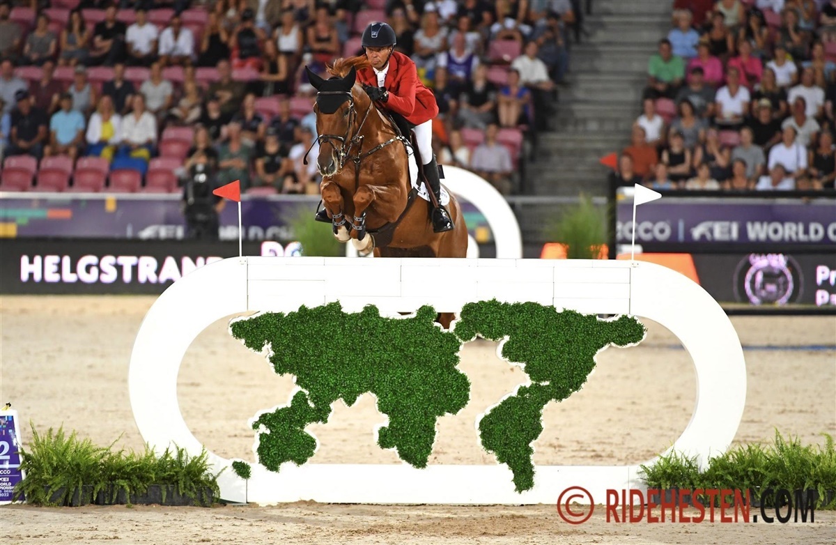 Lars Bak Andersen og Carl-Heinz B ved VM i 2022. Foto: Ridehesten.com/Annette Boe Østergaard