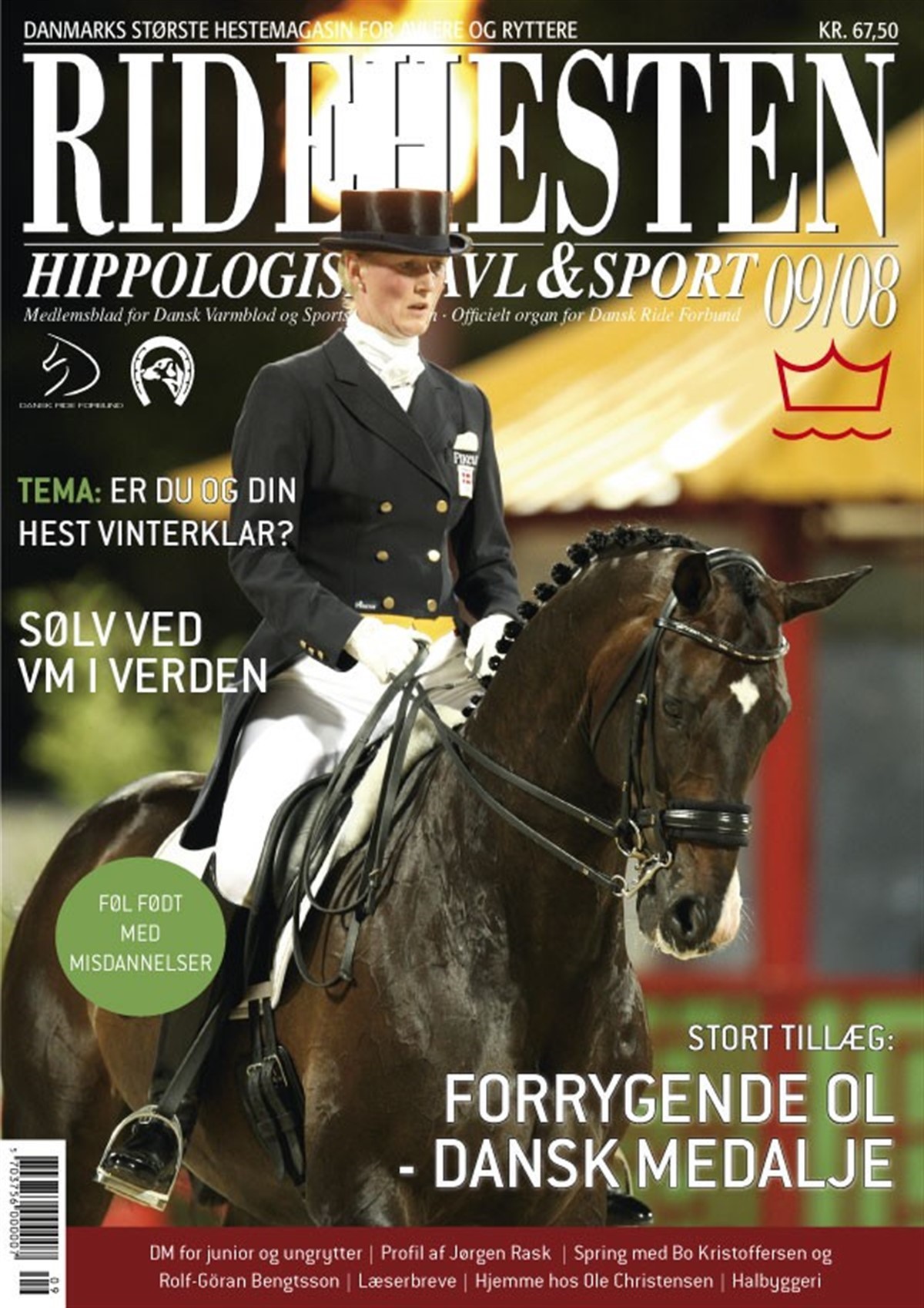 I september er der naturligvis stor fokus på årets ridesportslige præstationer ved årets allerstørste sportsbegivenhed: OL. De danske resultater er selvfølgelig i fokus, men de øvrige nationer følges også nøje, så ridesporten ved OL dækkes meget grundigt i Ridehesten med over 30 siders reportage. Du kan også læse om unghestenes VM i Verden, hvor det jo blev til dansk sølv. Læs også om ponyerytternes EM, om ungrytternes DM og om avlslegenden Gotthard. I vores boligsektion kan du høre lidt om, hvad du gør klogt i at tænke på, når du skal til at bygge ridehal. Vi ser også lidt på hesteejendomsmarkedet i USA. I serien ”Hjemme hos” besøges Ole Christensen på Vandstedgaard. En artikelrække indvarsler efterårets og vinterens komme og minder om, at det snart er ved at være dækkentid. Også staldmiljøet skal måske ses efter i sømmene? Vi ser på, hvordan tørv fungerer som underlag i stalden, men også på, hvordan støv bedst muligt undgås. Der er også fif at hente til springtræningen hos Bo Kristoffersen og Rolf-Göran Bengtsson. Dette var blot et lillebitte udpluk af september måneds ridehesten. Tag i næste uge godt imod efteråret og Ridehesten! Vi ønsker dig rigtig god læselyst!