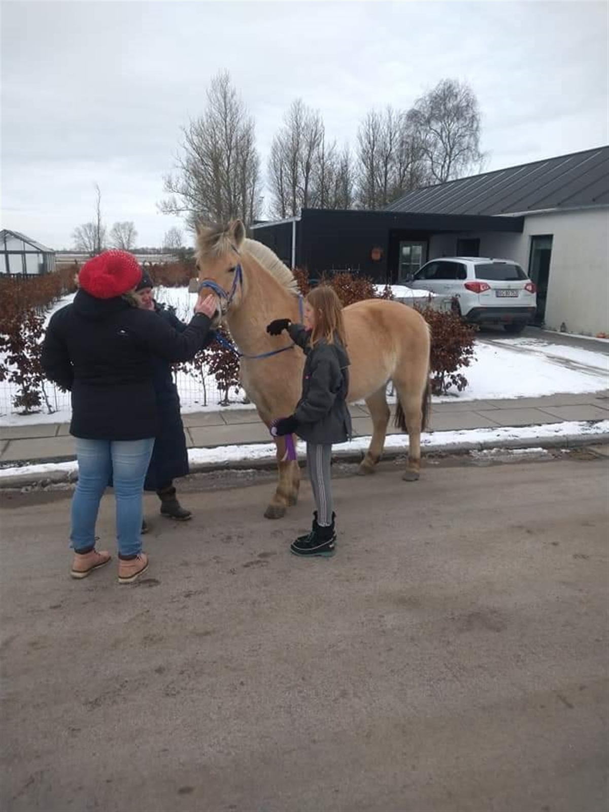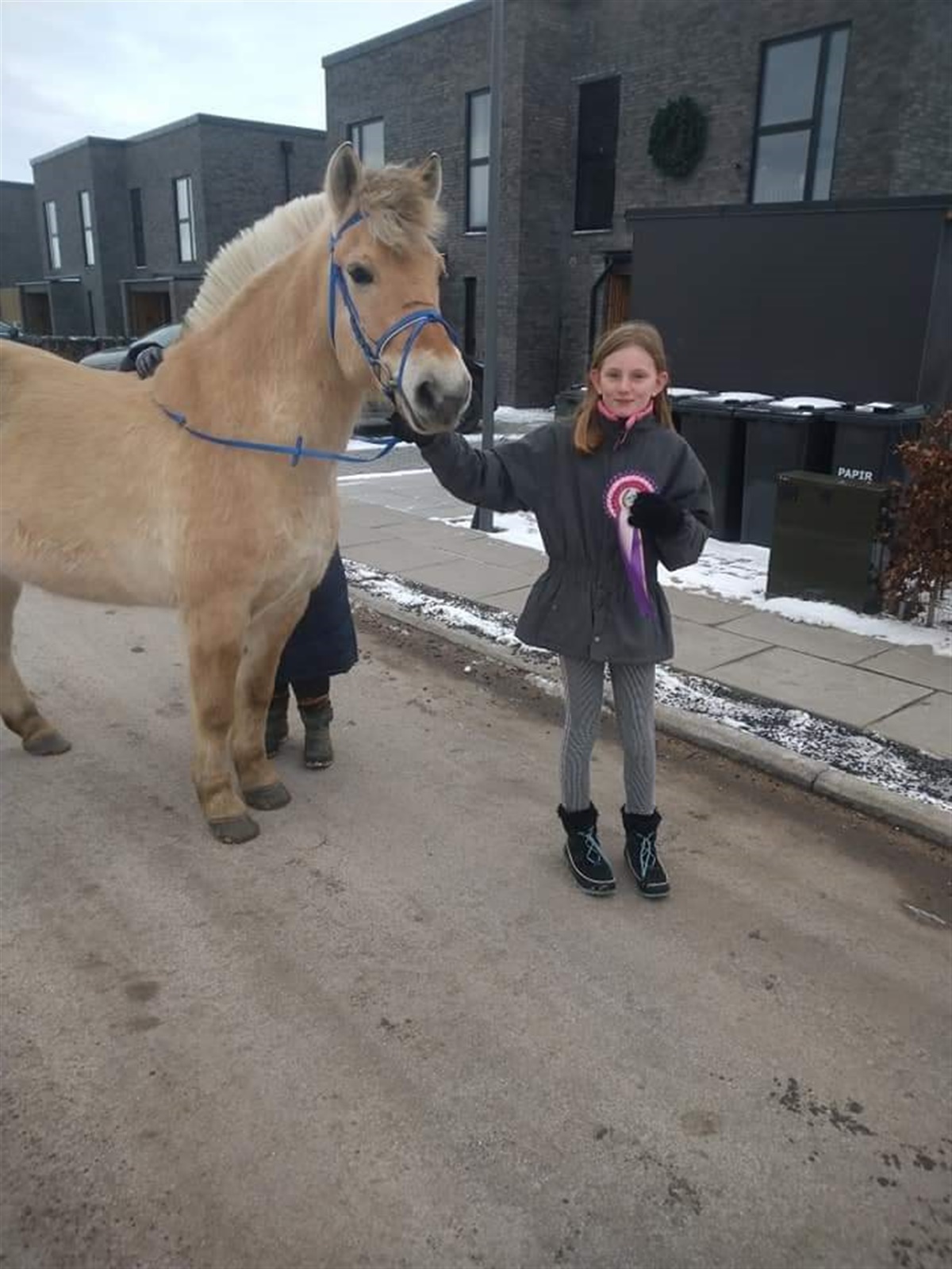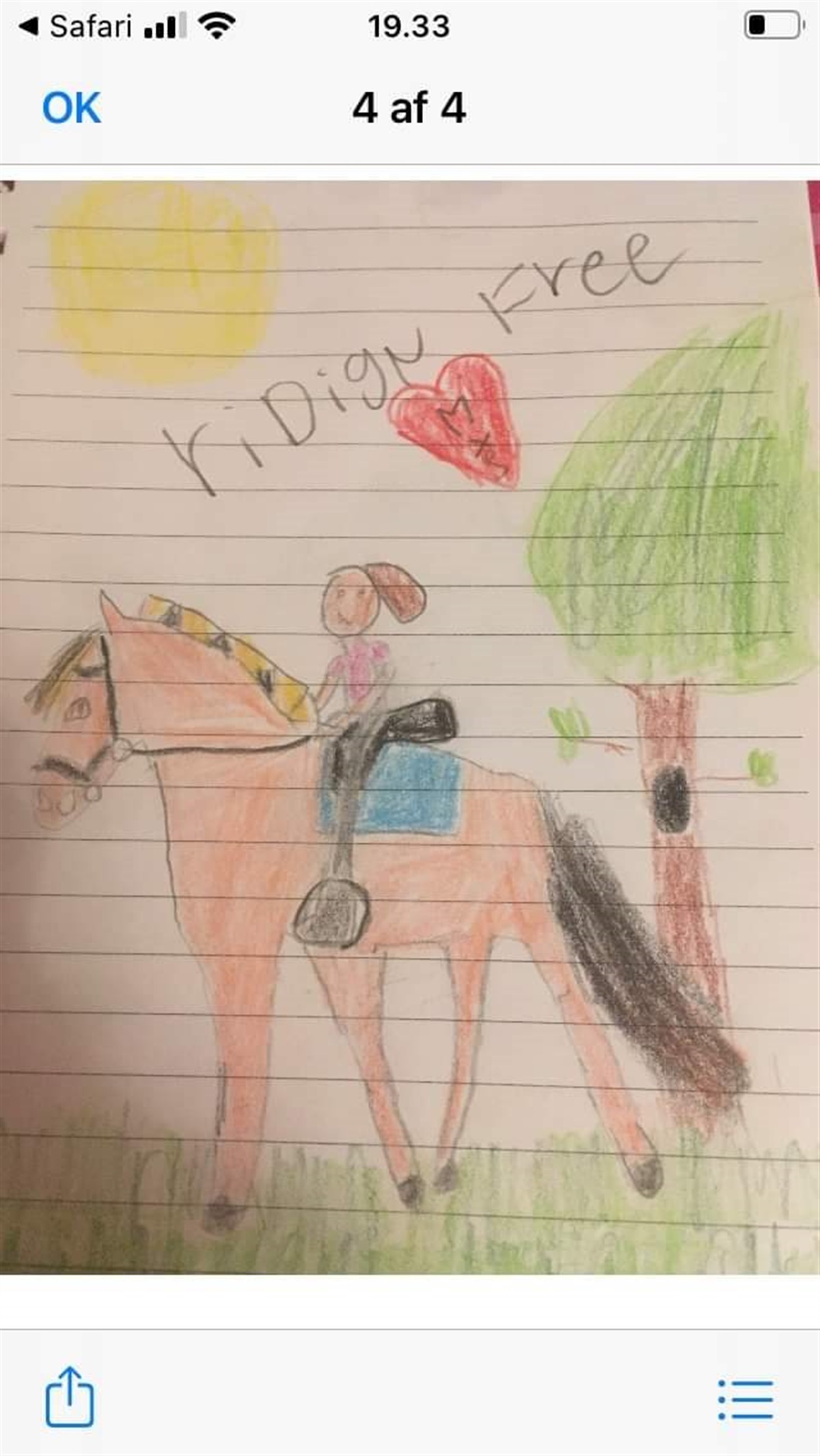 I sidste weekend havde eleverne mulighed for at indsende en tegning til en tegnekonkurrence, og vinderen, Mille på 10 år, blev overrasket i søndags. Overraskelsen var planlagt med Milles forældre, og hesten, Stig A., var iklædt en fin roset som Mille kunne få til et minde.