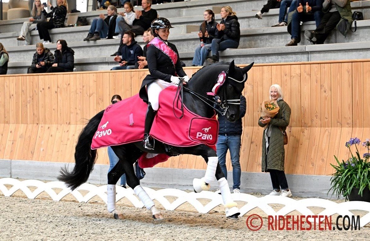 Nanna havde avlshingsten Blue Hors Santiano e. Sezuan/ Blue Hors Romanov (opdr. Straight Horse) helt på sin side i dag. Deres programbedømmelse på 76,571% blev suppleret af kvalitetskarakter som 9,0 for galop og 9,5 for både trav og kapacitet.