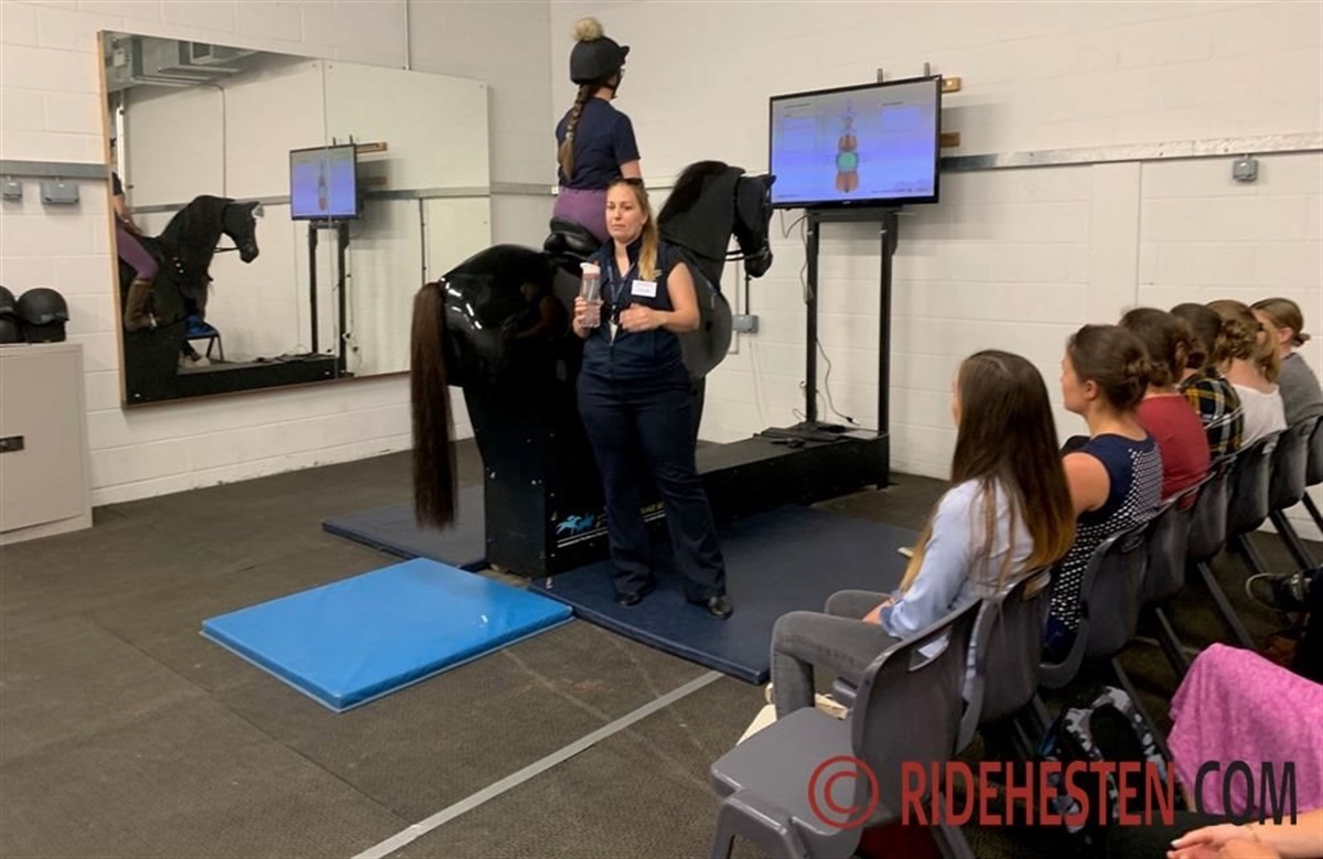 Tracey Bye fra Bishop Burton demonstrerede hvordan en ridesimulator kan være en hjælp i forhold til træning af rytteren. Selvom en ridesimulator aldrig kan erstatte det at ride på en rigtig hest, så kan det være et godt redskab til at træne rytterstabilitet og symmetri, øvelser som ville være langt vanskeligere på en levende hest. Den praktiske demonstration viste hvordan man ved hjælp af simulatoren kunne træne nye bevægelsesmønstre og fokusere på bevægelighed i hofterne. Disse øvelser hjalp til at forbedre rytterens benstilling og give en bedre symmetri i rytterens sæde. I sidste ende vil det føre til bedre kommunikation med hesten og ultimativt til bedre træning.