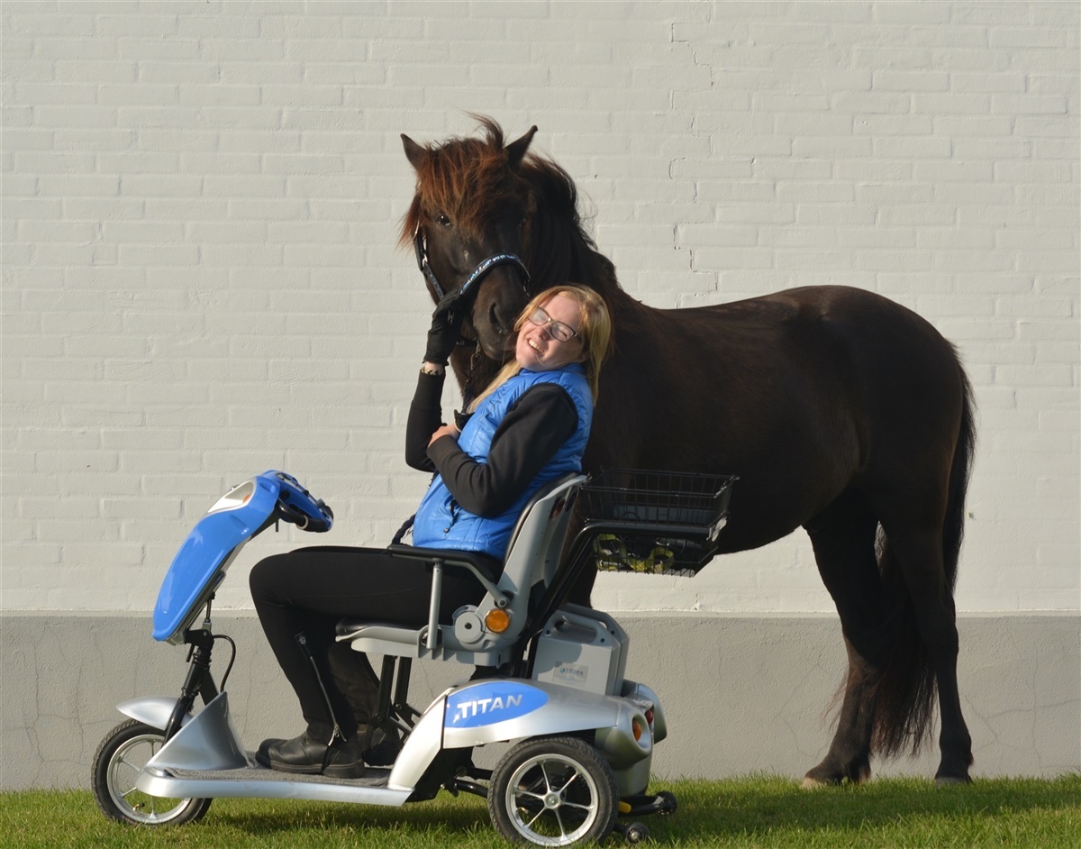 “Han forstod slet ikke, hvad jeg havde gang i. Jeg sidder meget skævt, og i starten blev han helt forvirret og gik i den forkerte retning. Men han kender mig nu og ved, han skal passe på mig. Jeg bruger min vægt og stemme til at styre ham, da jeg ikke har kræfter i benene til at give ham kommandoer på den måde,” siger hun.