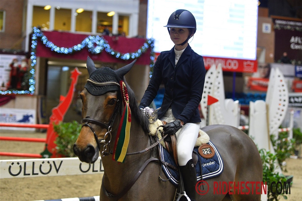 – Jeg havde en super god tur i dagens anden kvalifikation af Trophy finalen! Newcomer, til daglig kaldt Lars, sprang fantastisk og han var frisk og glad, hvilket altid er min første prioritet når jeg rider ind på banen med ham, fortæller Rie.