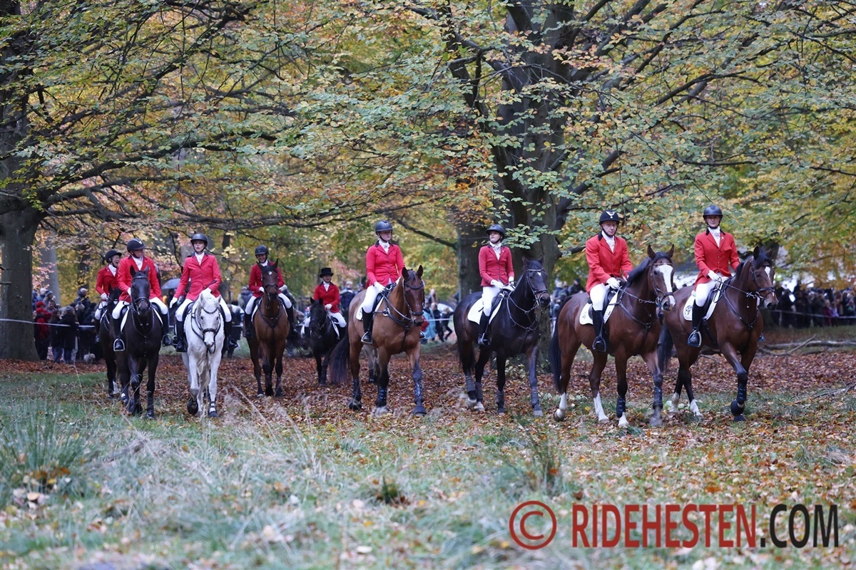 Den traditionsfulde Hubertusjagt, der markerer afslutningen på jagtsæsonen, begyndte kl. 10.00 ved Peter Lieps hus. Da rytterne forsvandt ud i det efterårsklædte skovområde, diffunderede publikum ligeledes ud på ruten. På første etape er især Ulvedalene og Sandskredet altid meget populære blandt publikum.