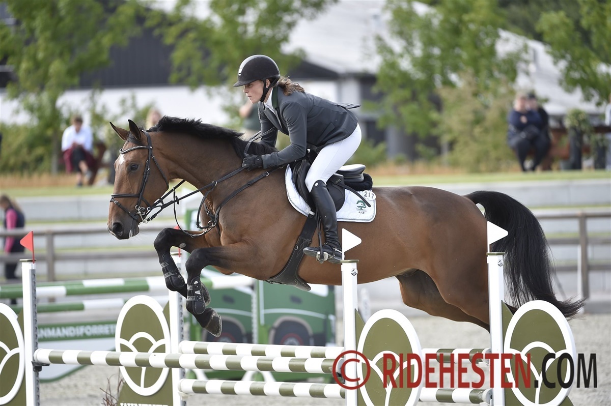 Karen var ligeledes til start på den utroligt velspringende Evolution Ask DWB e. Zirocco Blue VDL/Cheenook (opdr. Familien Camitz) og det var lige ved og næsten, at det lykkedes. Desværre kom der et let nedslag på A'eren i den ene kombination, et spring som i dag gav mange ekvipager fejl.