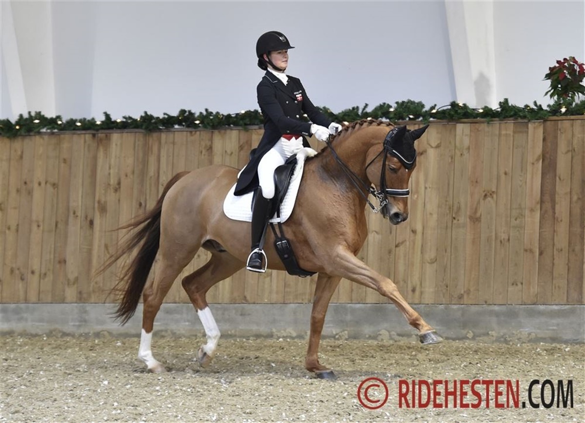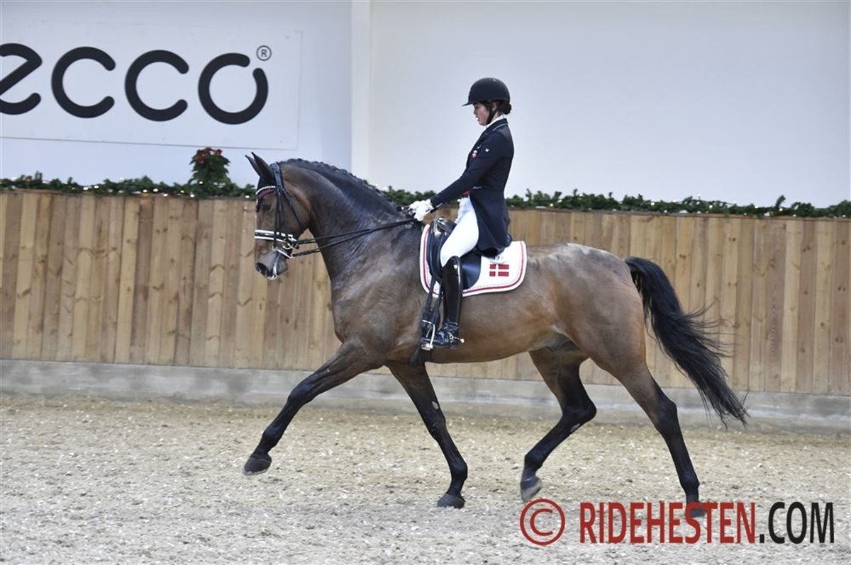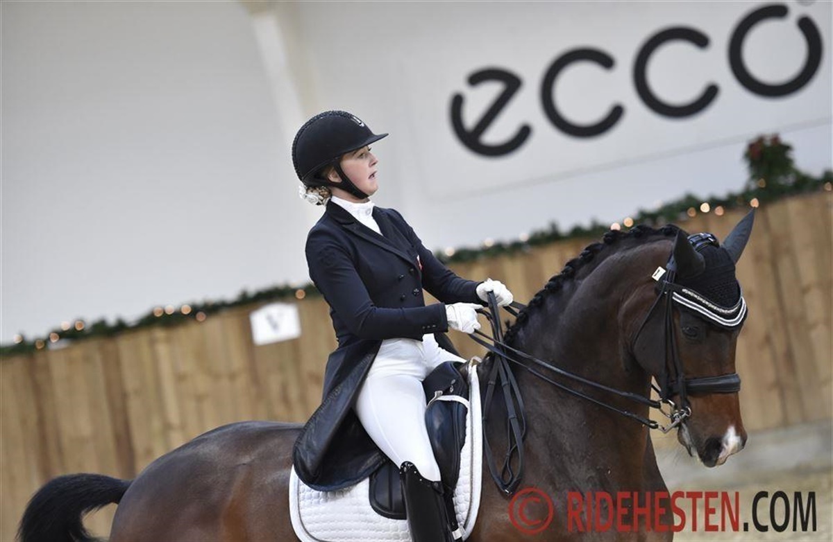 14 juniorryttere mødes i kürfinalen i ECCO Cuppen på Uggerhalne Sportsrideklub her til eftermiddag. Inden dagens kür havde Karoline Rohmann lagt sig i spidsen med knap tre procentpoints forspring til Nathalie Hering, og det forspring gav hun ikke fra sig. I küren red hun Jakas Don Louvre e. Blue Hors Don Romantic (opdr. Jan og Karina Kofoed-Nielsen) ind på førstepladsen, men Nathalie Hering red sig nærmere, idet hun var godt et procentpoints efter Karoline med bekendte Litvinenko Sjælstofte e. Imperio (opdr. Annette Olesen og Søren Rasmusssen) - Litvinenko Sjælstofte har tidligere været ejet og redet af Anne Troensegaard, men i september i år købte Nathalie hesten, og hun ser frem til at tage den med ind i U21 fra det kommende år.