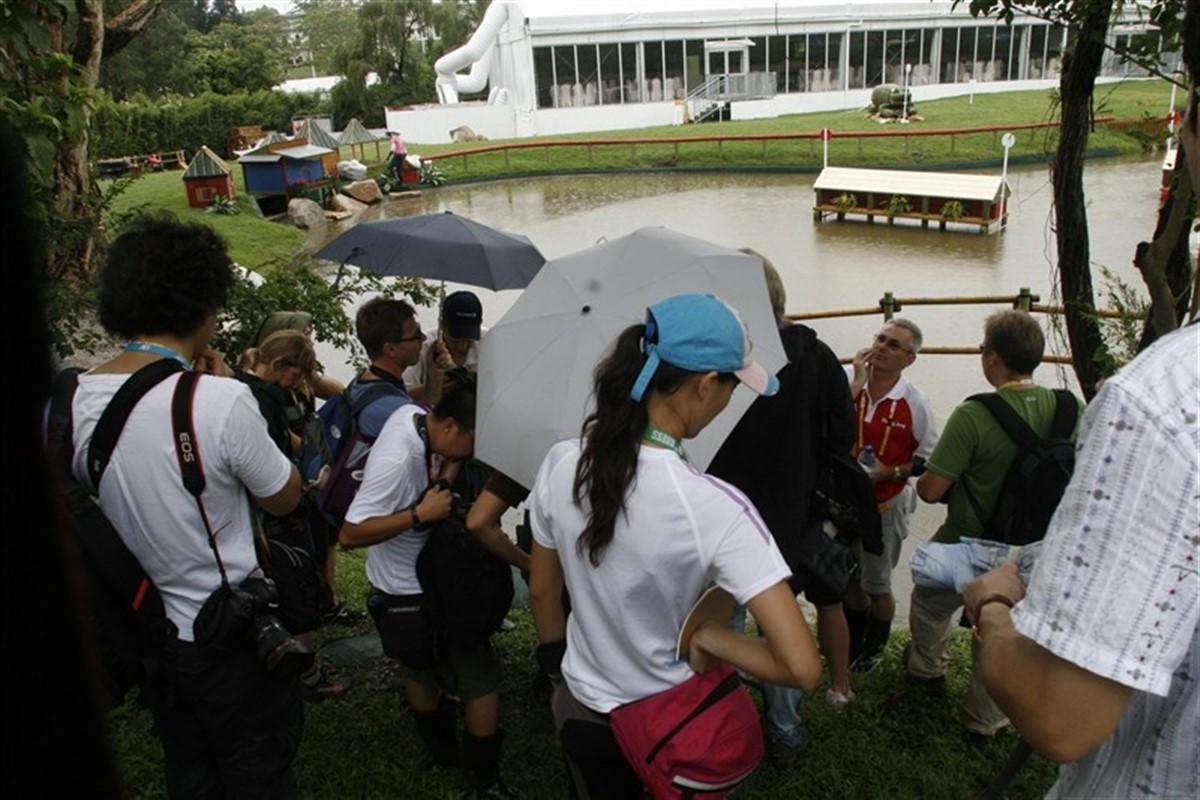 404 journalister og fotografer tilknyttet de skrevne medier og 260 tilknyttet tv er akkrediteret til OL i Hongkong, det er det højeste antal mediepersoner tilknyttet OL hidtil. Der arbejdes på højtryk i de to pressecentre, et for journalisterne og et (i kælderen) til fotograferne. Desværre har de kinesiske værter ikke helt styr på internethastigheden, og det har skabt nogle kontroverser, især blandt fotograferne, der er afhængige af at få deres fotos hurtigt sendt ud. Vi bliver dog mødt med stor velvilje alle steder fra, så der er fortsat håb om at få et godt "hul" igennem til omverdenen fra Hongkong. Tusinder af frivillige og ansatte er i gang døgnet rundt for at agere som hjælpere overalt på det store stadion, Sha Tin. En stor del af dem er sikkerhedspersonel, så der er godt styr på os alle sammen. Fra mediehotellet er der ca. 10 minutters kørsel til stævnepladsen, hvor vi skal omlades til en anden bus, for at blive kørt hen i nærheden af pressecentret. Inden vi kommer ind på stævnepladsen skal alt udstyr, og os selv, gennem et sikkerhedstjek, præcis på samme måde, som når man skal på flyrejse. De kinesiske værter har forsøgt at begrænse buskørslen ved at lave en såkaldt: buble to buble service, hvor akkrediterede pressefolk kan gennemgå screningen på hotellet, inden vi bliver kørt direkte til pressecentret, men... Det tager lang tid, og tålmodighed er ikke mediefolks stærke side! 18.000 har meldt sig som hjælpere ved OL i Hongkong, og ud af dem er udvalgt 1.800 frivillige hjælpere, som alle har været på "smilekursus", og det virker, sjældent har jeg oplevet så engagerede, medlevende, hjælpsomme og høflige hjælpere som netop her. Men... der skal være orden på tingene, og de skal gøres som besluttet, her er ikke plads til "slinger i valsen". Så det forsøger vi så at leve med. Tidsplanen har været noget presset de første dage. Selvom der ikke var konkurrencer i går, gik det meste af dagen, for mit vedkommende, med at blive akkrediteret og indskrevet på behørig vis, få fotografvesten udleveret, nøgle til en opbevaringsboks til kameragrej, der skal stå ude, for inde i katakomberne under tribunerne, hvor fotograferne hører til, kører air-condition på fuldt tryk. Så alt grej dugger omgående til, når det bæres ud og ind. Vi skal betale 2000 hongkong dollar (ca. 200 euro) for adgang til internettet, og det har også bragt sindene lidt i oprør. Dagen sluttede for mit vedkommende i aftes kl. 22 og begyndte igen kl. 04.00. I aften bliver det endnu senere, og dagen i morgen begynder også kl. 04.00. I morgen tidlig skal de sidste militaryryttere gennem dressurdisciplinen, og så er det tid om eftermiddagen til vet. check af dressurhestene! Konkurrencerne må afvikles tidlig morgen (06.00) eller om aftenen fra kl. 19.00 for at hestene (og rytterne) ikke skal arbejde i dagens varmeste timer.