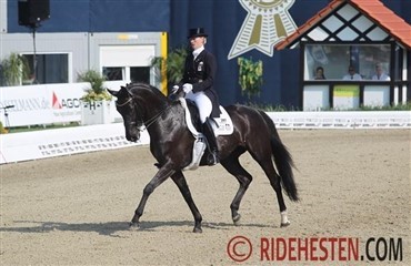 Dansk Ride Forbund har haft nogle udfordringer med et nyt IT system til registrering af resultater mv. Det betyder, at forbundet søndag under JBK Horse Show indbød til en reception, hvor medaljetagerne fra 2012 samt championatsvinderne fra 2011 blev hædret. Der står adskillige fremsynede dansk varmblods opdrættere bag mange af de heste, som har været en del af de succesfulde dressurlandshold i 2012. Iblande de mange individuelle og holdpræstationer strålede også Anika Lykke Dalskovs dobbelte bronzemedalje ved Para OL i London. Samtidig benyttede formanden lejligheden til at takke ponydressur landstræner Vibeke Degn Andersen for 10 års fantastisk arbejde i spidsen for dansk ponydressur. Hun takkede for et bragende bifald og sagde bl.a. Jeg ser jobbet som landstræner som en veludført kür, noget er tekniak andet er kunst og jeg har af forbundet fået lov til at udføre mit arbejde med helt frie tøjler. Avler hædret Der blev dog sat fokus på en enkelt af dem, nemlig den mest vindende Dansk Varmblods hest i konkurrenceåret 2011. Det blev ikke uventet den super succesfulde hoppe Damgårdens Extens e. Crelido, som Linnea Ericsson har fejret store triumfer med både i sæsonen 2011 og 2012. Parret kom sidste år ind på femtepladsen i den 5-stjernede Grand Prix i Falsterbo. Damgårdens Extens er avler af de dygtige avlere Peter og Elsebeth Johansen fra Støvring Varmblod. Samme avlerpar står også bag champioantsfinalisten i dressur Fleedwood (Furst Heinrich /Rohdiamnt) redet af Nynne Ebbenes. - Vi blev anbefalet at købe Extens mor af Ib Kirk, og Extens er det første, og enest føl født hos os. Vi kunne ikke få hende ifolet året efter, så vi solgte hende til vores nabo Niels Grøndahl, der har fået flere føl efter hende, fortæller Elsebeth med favnen fuld af blomster og gaver. Extens blev tilredet af Claus Holm og derefter solgt til Nikolaj Kowalski og efter at have været i hænderne på Thomas Sandgaard kom hoppen i stald hos Linnea Ericsson, og det par har leveret adskillige fejlfrie runder i de store klasser.