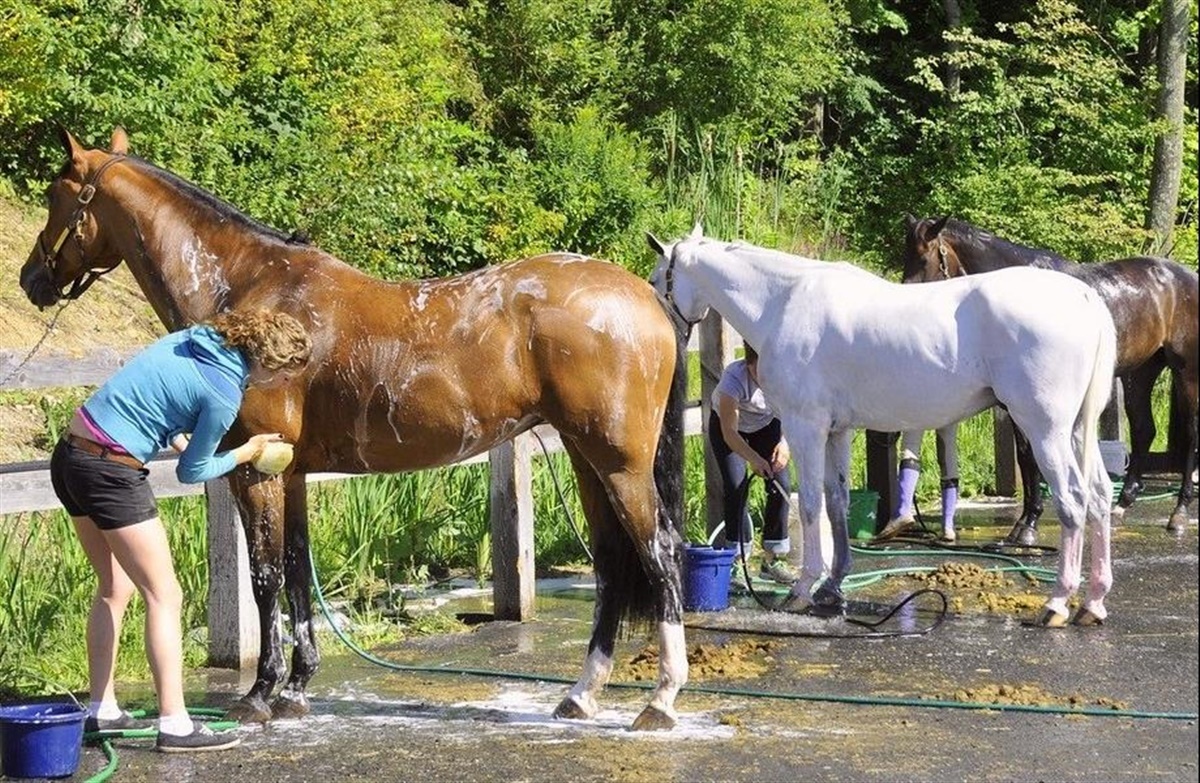 Blandingen hældes blot i en sprayflaske og sprayes nu på det angrebne område. Herefter er det helt enkelt at kradse æggene af. Bikarbonat eller bagepulver kan også virke lindrende mod kløe og insektbid. Man kan skylle hestens ben efterfølgende, men det er ikke nødvendigt, for opløsningen er helt igennem miljøvenlig, fortæller Emelie Tapper.