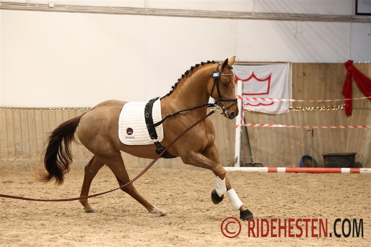 Fra start var der god stemning i hallen og mange fremmødte hjælpere fra både region 1 og 2. Formiddagen bød på 7 springhingste, der blev vist i hallen til løsspringing. Dommerne udpegede tre, som de gerne ville se på hård bund og i longe. Herefter blev de udtaget til hingstekåring, de tre hingste var: