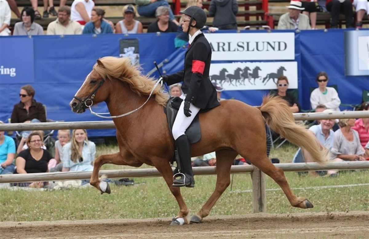 Det er en lang liste af kendte ryttere, der kan ses på listerne over starter til DM 2010 for islændere. DM startede i går, og fortsætter til i morgen, hvor der er finaler. DM afholdes på stutteri Birkegaarden, hvor de første ryttere tjekkede ind i onsdags. Ved T2 tölt udtagelsesrunden vandt Anne Sofie Nielsen/Nökkvi fra Ryethøj e. Fengur fra Ibishóli med en samlet karakter på 7,50. Andenpladsen gik til Fredrik Rydström/ Krókur frá Efri-Rauðalæk e. Otur fra Sauðárkróki med en samlet karakter på 7,47. Og endelig kom Julie Christiansen/Vonarneisti frá Lynghaga, som afsluttede med en samlet karakter på 7,20. Ved V1 firgang udtagelsesrunden vandt Fredrik Rydström/Visir von Birkenhof e. Dökkvi fra Mosfelli med en samlet karakter på 7,13. Dorte Rasmussen/Gumi frá Strandarhöfði e. Nagli fra Þúfu kom på andenpladsen med en karakter på 7,07, og Laura Midtgård/Herkules fra Pegasus e. Þokki fra Bjarnanesi kom på tredjepladsen med en samlet karakter på 6,90. Flere resultater kan ses ved at følge linket i nyheden.