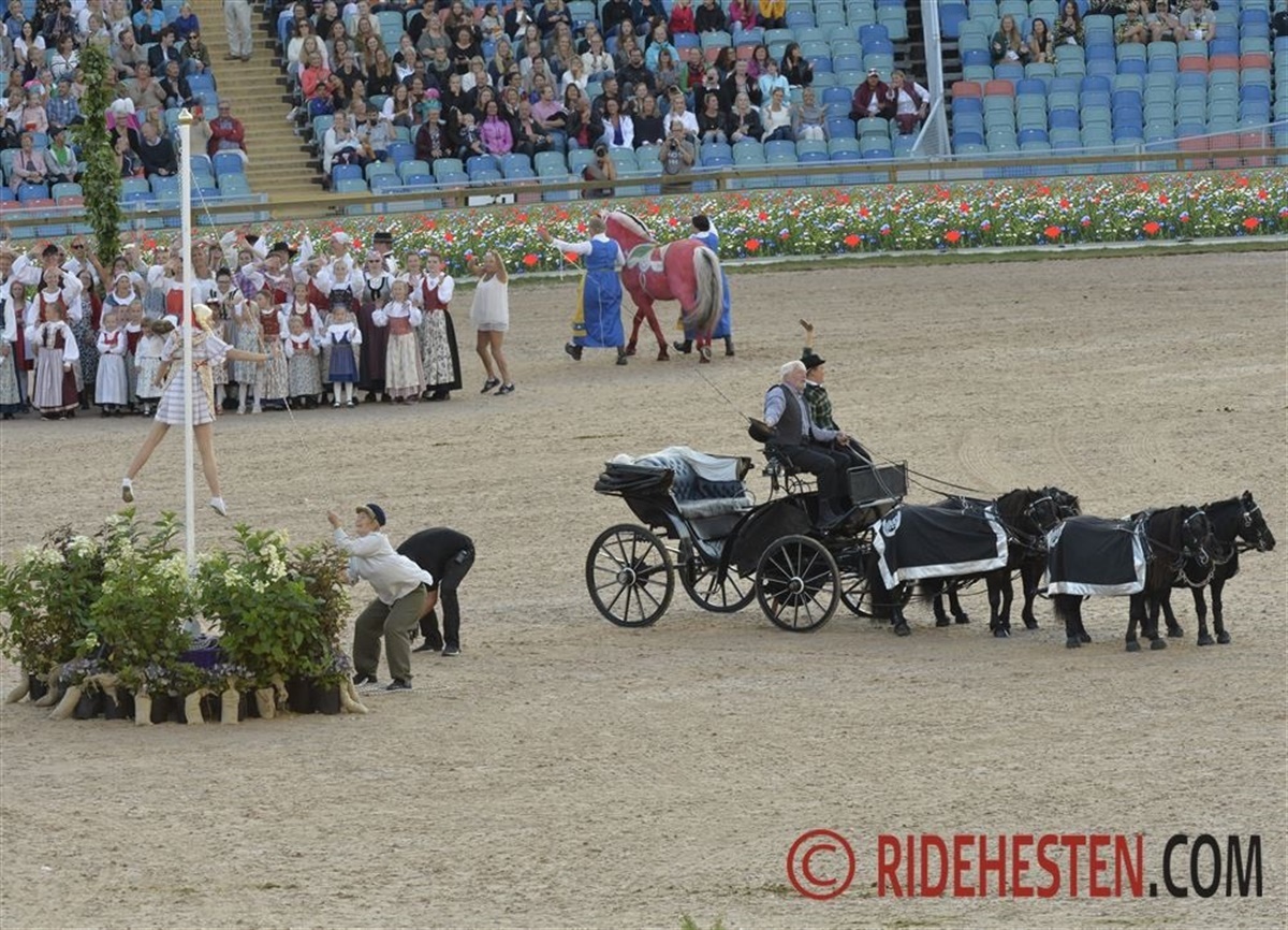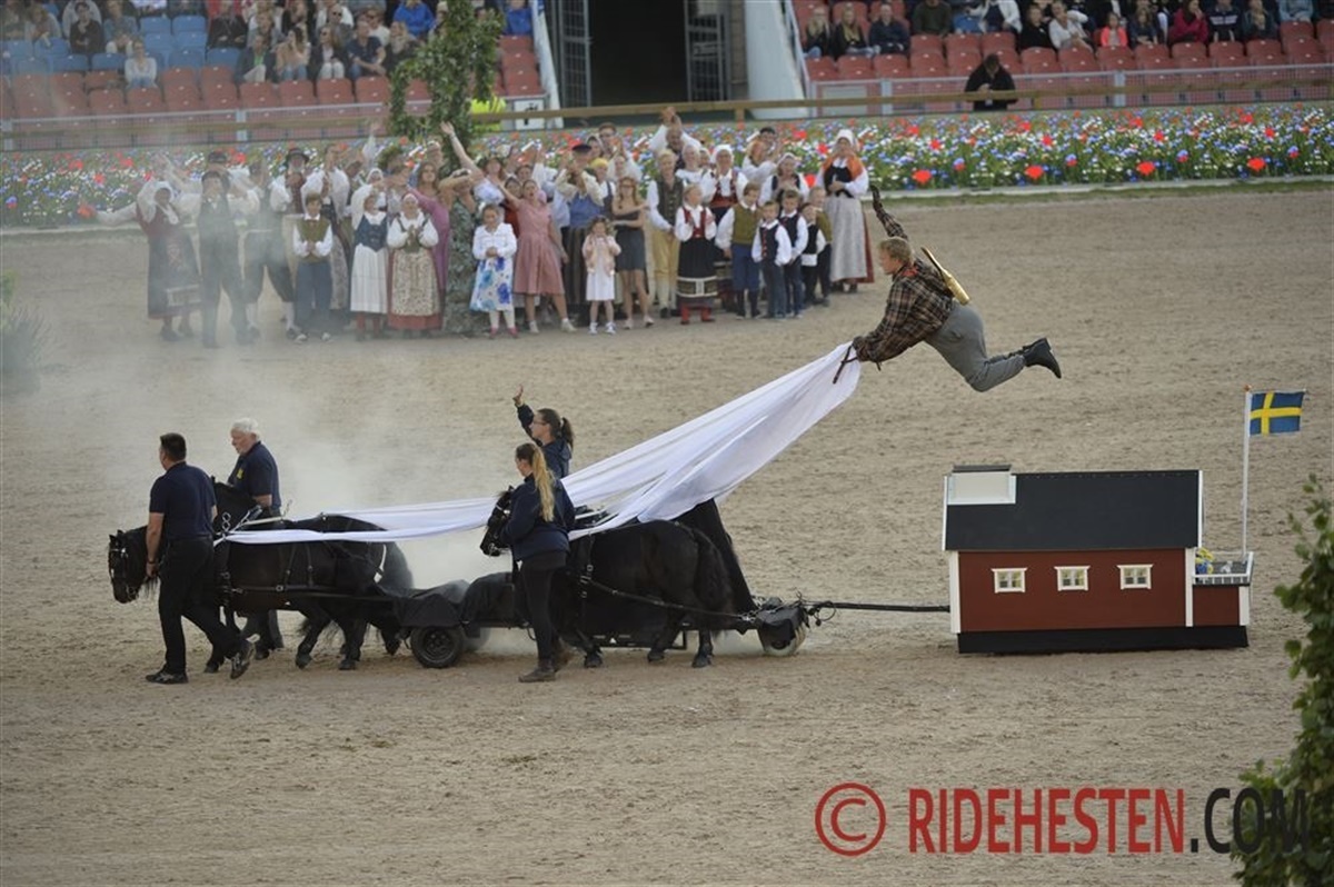 Det var et svensk tema som åbnede det fire dobbelte Europamesterskab i dressur, paradressur, springning og kørsel og der var godt fyldt på tilskuerpladserne, for aftenens åbningsshow havde gratis entre.