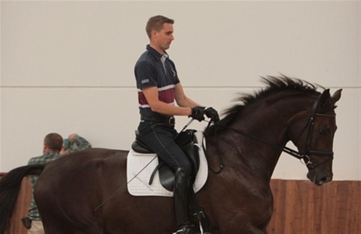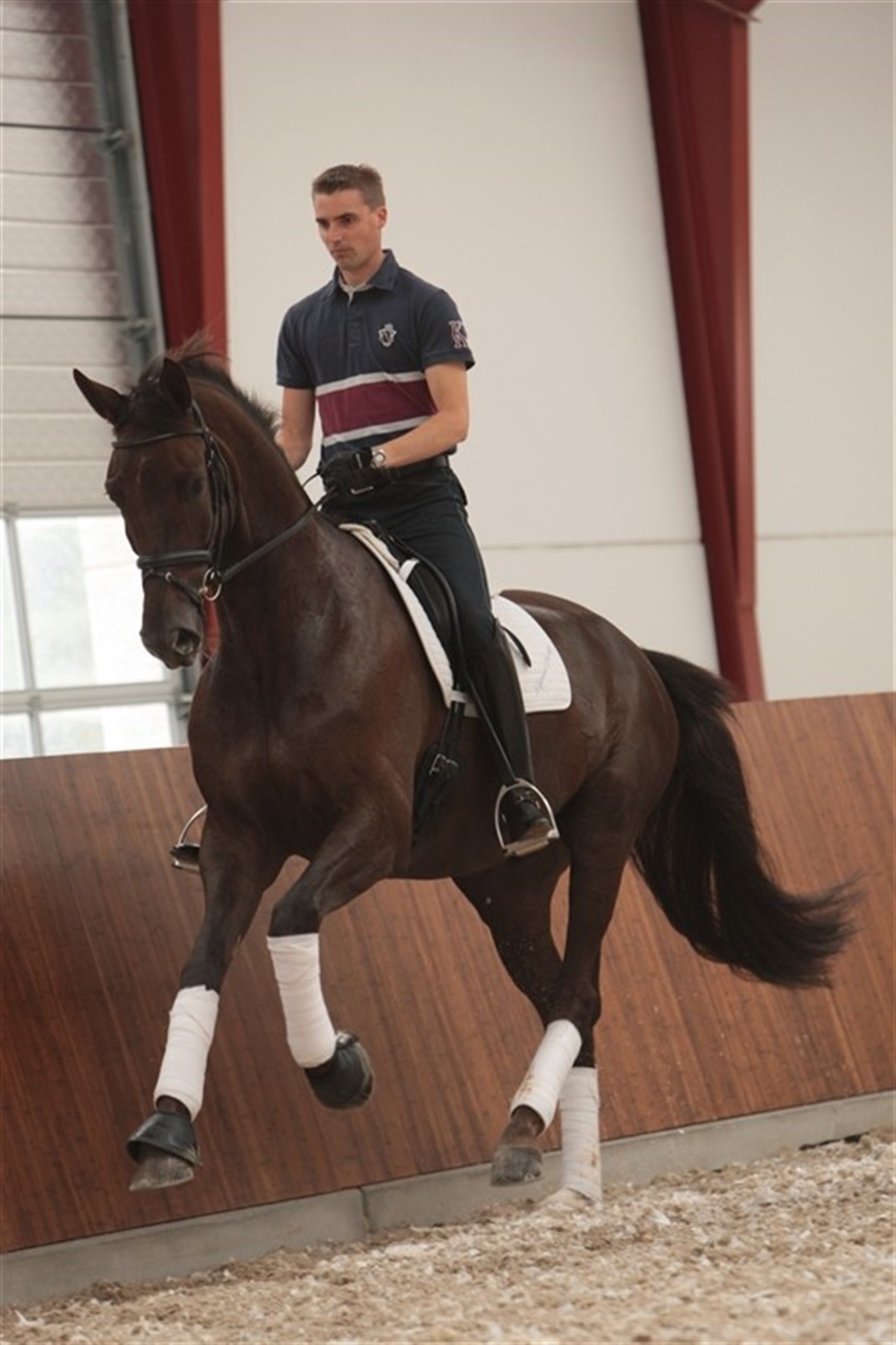 Der arbejdes på højtryk på Møgelmosegård, både inde i ridehallen og rundt om på ejendommen, hvor et stort antal håndværkere er i fuld gang med at omdanne det smukke stutteri til en international træningsstald. Ridehallen er næsten klar. Bunden blev lagt ud i aftes, og i dag skridtede de første dressurheste ind på banen. Den smukke barriere af bambus er på plads, men håndværkere er i fuld gang med at arbejde på den sidste finish på barrieren, mens andre er ved at mure omkring toiletter, køkken og kontor i ridehallen. Så selvom hestene er kommet i stalden, så er der alligevel et stykke vej på vejen mod den endelige færdiggørelse. Andreas Helgstrand nyder at have fået hestene placeret lige uden for hoveddøren. Og han glædede sig i høj grad til at komme i gang med arbejdet i ridehallen. Anette Ejlersgaard og Andreas selv var de første, som red ind i hallen i dag. – Det er en helt speciel følelse, indrømmede Andreas. Akustikken i ridehallen er rigtig god, og selvom vinden hujede og regnen strømmede ned over ridehallen, så var der alligevel en dejlig ro i den store, isolerede hal. Når ikke lige håndværkerne hamrede og savede udenfor og inde i hallen. Der er sat ekstra bokse op i den ene stald, så der er plads til 40 heste, men da der allerede nu er tæt på fulde huse i de store bokse, så er der bestilt flere bokse. I den store hal, tættest på ridehallen, arbejdes der på at gøre plads til endnu 27 heste. Skridtmaskine, udendørs ridebane, spejle i ridehallen alt er bestilt og planlagt, og på vej på plads. Andreas var her til formiddag i fuld gang med træningen af de tre ungheste; Uno Donna Unique, Driver og Lætare til VM i Verden, og bagefter var det Carabas' tur til at svede i ridehallen. Det bliver en travl måned for Marianne og Andreas Helgstrand med VM- og EM-deltagelse samt arbejdet med at komme ind i en god rutine i deres nye hjem, men de tager arbejdet med et smil, og så kan de også glæde sig over, at både ansatte, familie og venner er parat til at ”give den en ekstra skalle”.