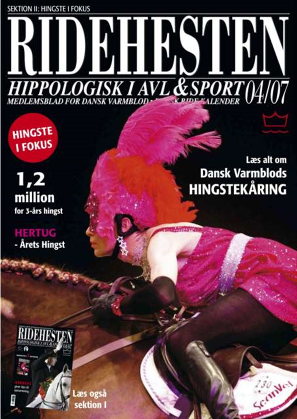 Ridehestens apriludgave er nu på vej ud til bladets mange abonnenter. Det er som altid en meget speciel udgave, og igen i år er Ridehesten delt i to sektioner; en "almindelig" sektion, med Ridehestens kendte indhold af faglige artikler, nyheder fra avlen og sportens verden, profiler med meget mere - igen denne måned på 196 sider, men hertil kommer den anden sektion, som vi har valgt at kalde "Hingste i fokus". Det er 164 sider fyldt med artikler og billeder fra Dansk Varmblods hingstekåring i Herning. Resultatet af kåringen med opstillingsfotos, bekrivelser og karakterer på samtlige kårede og anerkendte hingste, samt naturligvis, adskillige flotte, informative annoncer fra danske og udenlandske hingstestationer. Ialt 360 sider Ridehesten er på vej ud i landet til de mange forventningsfulde abonenter. I denne måned kan man bl.a. få gode råd til opvarmning hjemme som ved ridestævner af Andreas Helgstrand. En ny revolutionerende behandling af kronisk betændelse i led, der kan koste hesten livet, er nu på det danske marked, det er blot et par af de mange interessante, hyggelige og informative artikler man kan læse i Ridehestens aprilnummer. God fornøjelse.