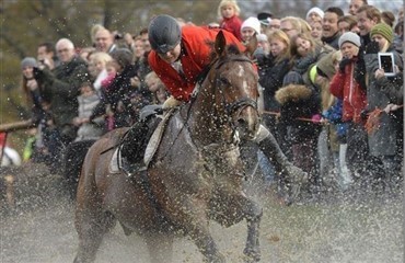 Siden Sportsrideklubbens stiftelse i år 1900 er der hver den første søndag i november blevet redet Hubertusjagt i Dyrehaven. Hubertusjagten har med årene udviklet sig til en sand folkefest, hvor op mod 40.000 tilskuere valfarter til Dyrehaven nord for København, for at nyde synet af ryttere og heste, og ikke mindst den smukke efterårsskov. Mange tilskuere oplever rytterne i flotte og dramatiske udspring over grøfter, lange svæv i luften på dybe landinger og ikke mindst udspringet i Magasindammen, hvor forventningerne er at en eller flere ryttere må tage sig en dukkert i det kolde mudrede vand. For jagtrytterne markerer Hubertusjagten afslutningen en sæson, der har budt på adskillige jagter rundt omkring i landet. Hver jagt er en del af kvalifikationen til at måtte ride det afsluttende opløb på Hubertusjagten. Det er de 30 heste og 15 ponyer, som i løbet af sæsonen har kvalificeret sig til at måtte ride det for heste 800 meter, og for ponyer 600 meter lange væddeløb, som afgør hvem der bliver årets Hubertusvindere. Når de hurtigste ryttere har passeret målstregen, er der præmieoverrækkelse på Eremitageslottets trappe. Her modtager Hubertusvinderen Prins Henriks ærespræmie samt Sportsrideklubbens æresdækken. Hubertuskæden overrækkes på trappen til den vindende ponyrytter, af sidste års vinder, og vinderen af hesteopløbet får sin kæde overrakt søndag aften ved en gallafest. Starten på jagten går fra Peter Lieps Hus kl. 10.00, efter at master har præsenteret officials og givet feltet instruktioner om jagtens forløb. Herefter rider feltet igennem bl.a. Ulvedalene og Grusgraven, der begge har forhindringer med dyb landing, og 1. etape slutter ved Eremitageslottet ca. kl. 10.50. Efter en pause på ca. 15 minutter fortsætter jagten, og ved slutningen af 2. etape kommer rytterne til det spændende udspring i Magasindammen (forhindring nr. 32). Jagten er 13 km lang og undervejs skal der passeres 34 forhindringer. Selve jagten slutter igen ved Eremitageslottet, og opløbsrytterne rider derefter mod Hjortekær og den gamle galopbane, hvor væddeløbet starter. Få mere info om rute m.m. via link til højre. Kilde: Hubertusjagt.dk
