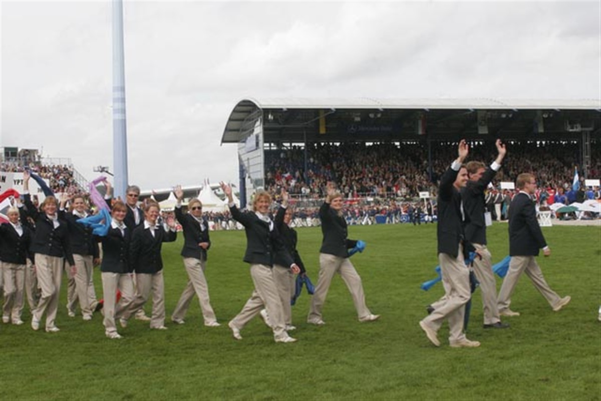 De danske deltagere var i topform ved indmarchen på stadion, som blev et festligt indslag med omkring 900 aktive på banen. Åbningsceremonien druknede i vand i begyndelsen, men publikum forstod at skabe en god stemning. Mest imponerende var de 64 avlshingste, som leverede en forrygende kvadrille. Det var den nye præsident for FEI HKH Prinsesse Haya, som havde æren af at erklære WEG åbnet. I en tale, som publikum flere gange afbrød med bragende klapsalver, sagde hun bl.a.: - Da du er en del af denne verden af heste, så er du en del af en global familie der krydser over grænser og generationer. Som i en familie vil dine bedrifter altid blive husket og fejret. Uanset resultatet af din indsats i konkurrencerne her, så vil du altid have minderne fra dette stævne. Og vi der ser på vil være beriget over at have haft det privillegium at følge dig i konkurrence.