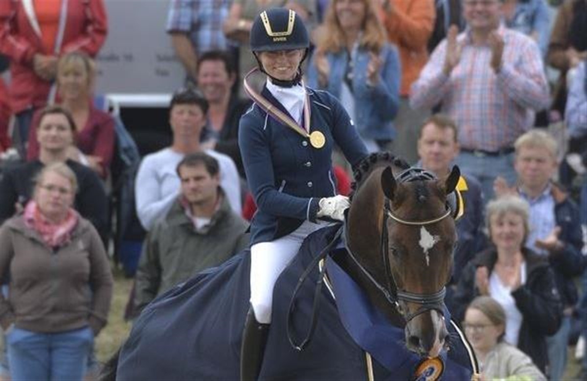 Kl. 14:23: Mecklenburgeren Sandiego e. Sanciso blev redet af Carola Koppelmann til 8,52 point og uden for medaljechance nu, hvor der er to ryttere tilbage.
